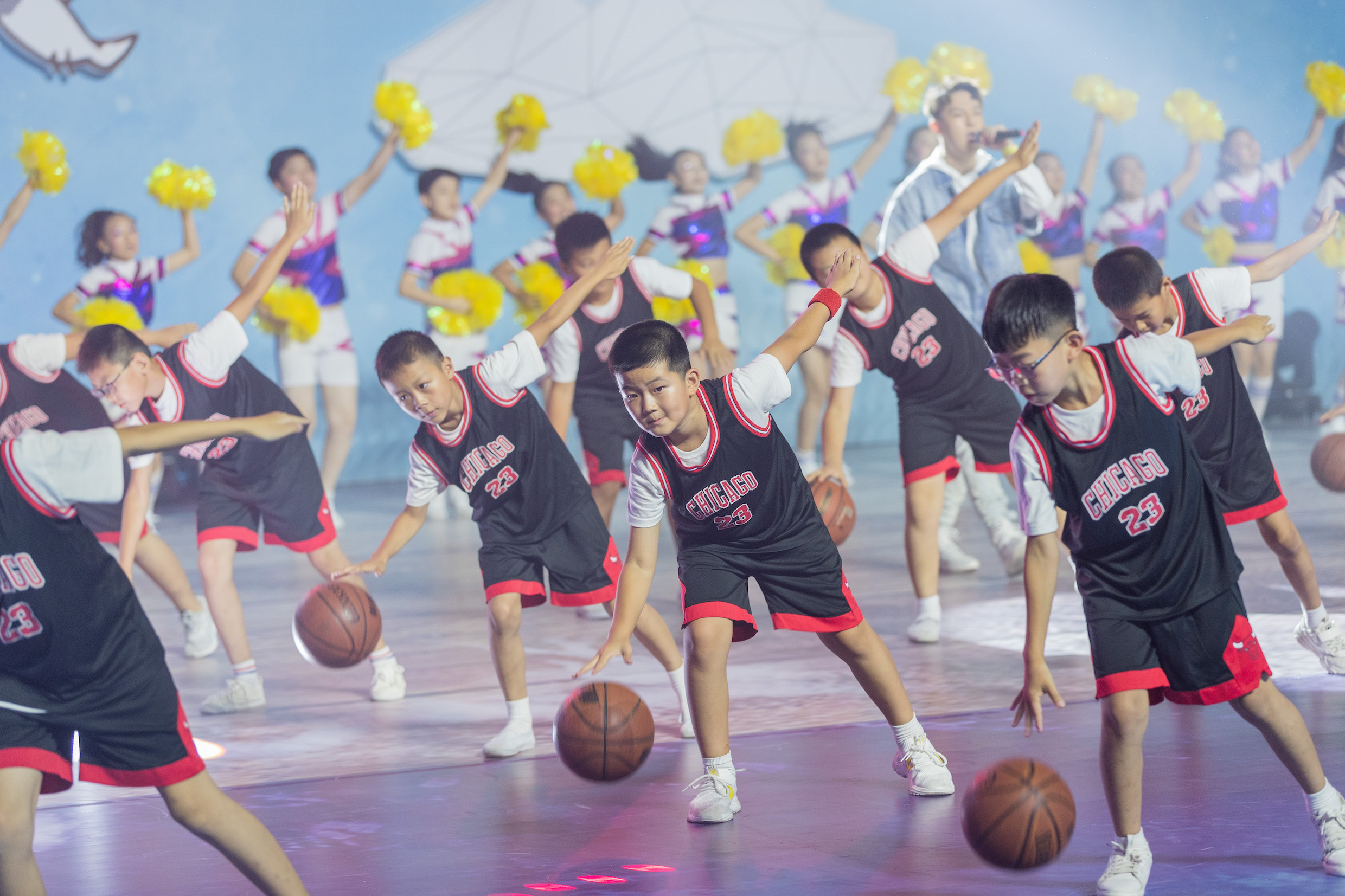 學生們展現青島作為“足球城市”的傳承