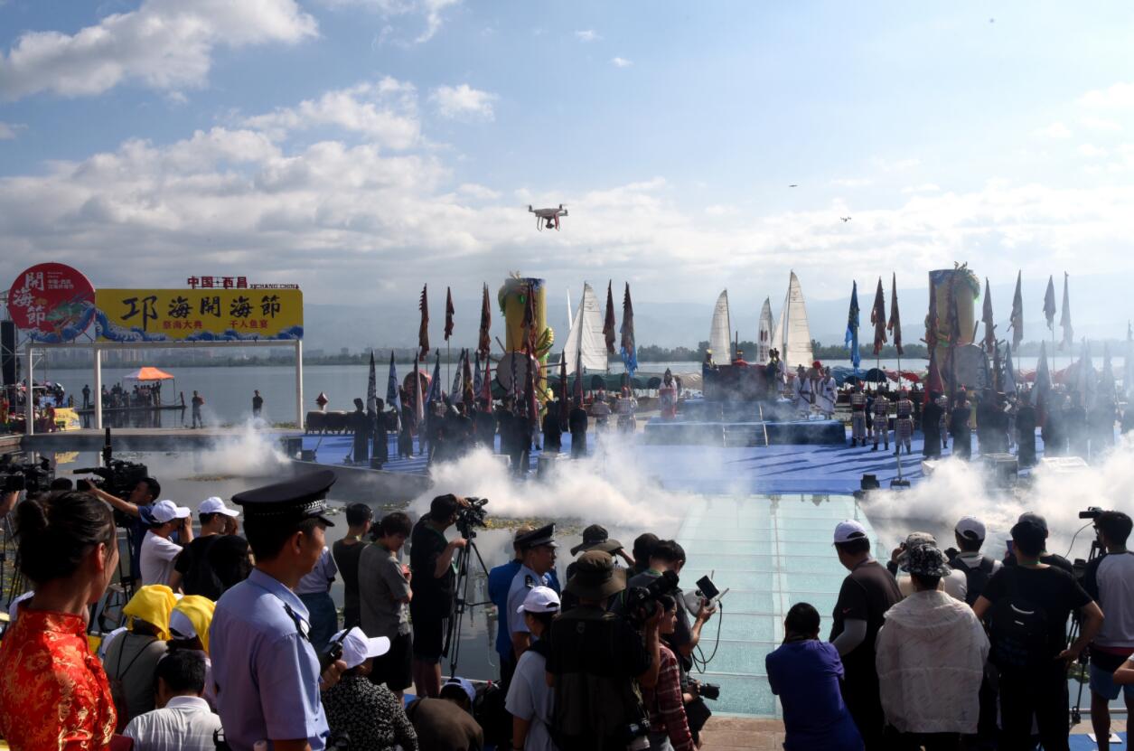 「開海節」民間俗稱趕海,祭海是千年魚文化的古老習俗。邛海漁業史可追溯到兩千年前,至今沿邛海的大小漁村等地仍保留着漁船以及水上船俗文化和漁家文化,百年來的漁家風俗以及在漁船上舉行祭祀活動代代相傳。一年一度的「開海節」將傳統民俗與現代文化藝術相結合,發展演變為帶有西昌邛都烙印的開海,敬海,品海,悅海,擁海的歡樂盛會。