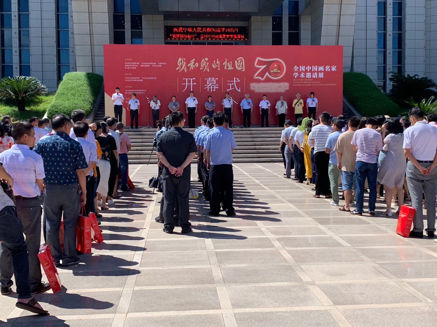【香港商報網訊】7 月 30 日上午,慶祝新中國成立 70 周年·我和我的祖國——全國中國畫名家學術邀請展在福建東山縣文博中心開幕。展覽持續至下月15日,開放時間是上午9時至下午5時,廣大市民和藝術愛好者們可前往參觀。