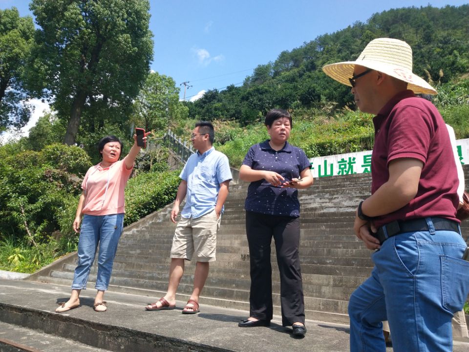歙縣和街口鎮領導介紹河道打撈保潔及漂浮物處理情況