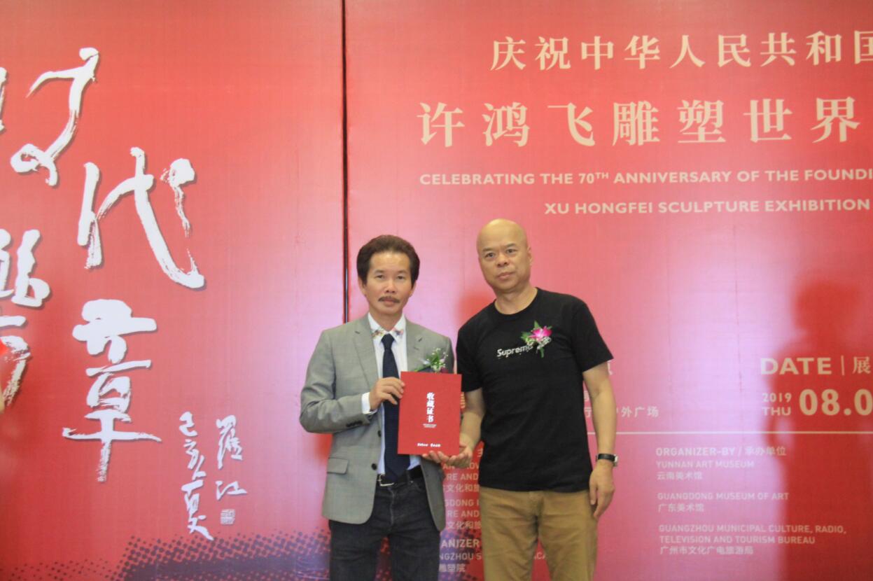 雲南美術館館長羅江為許鴻飛頒發雲南美術館收藏證書
