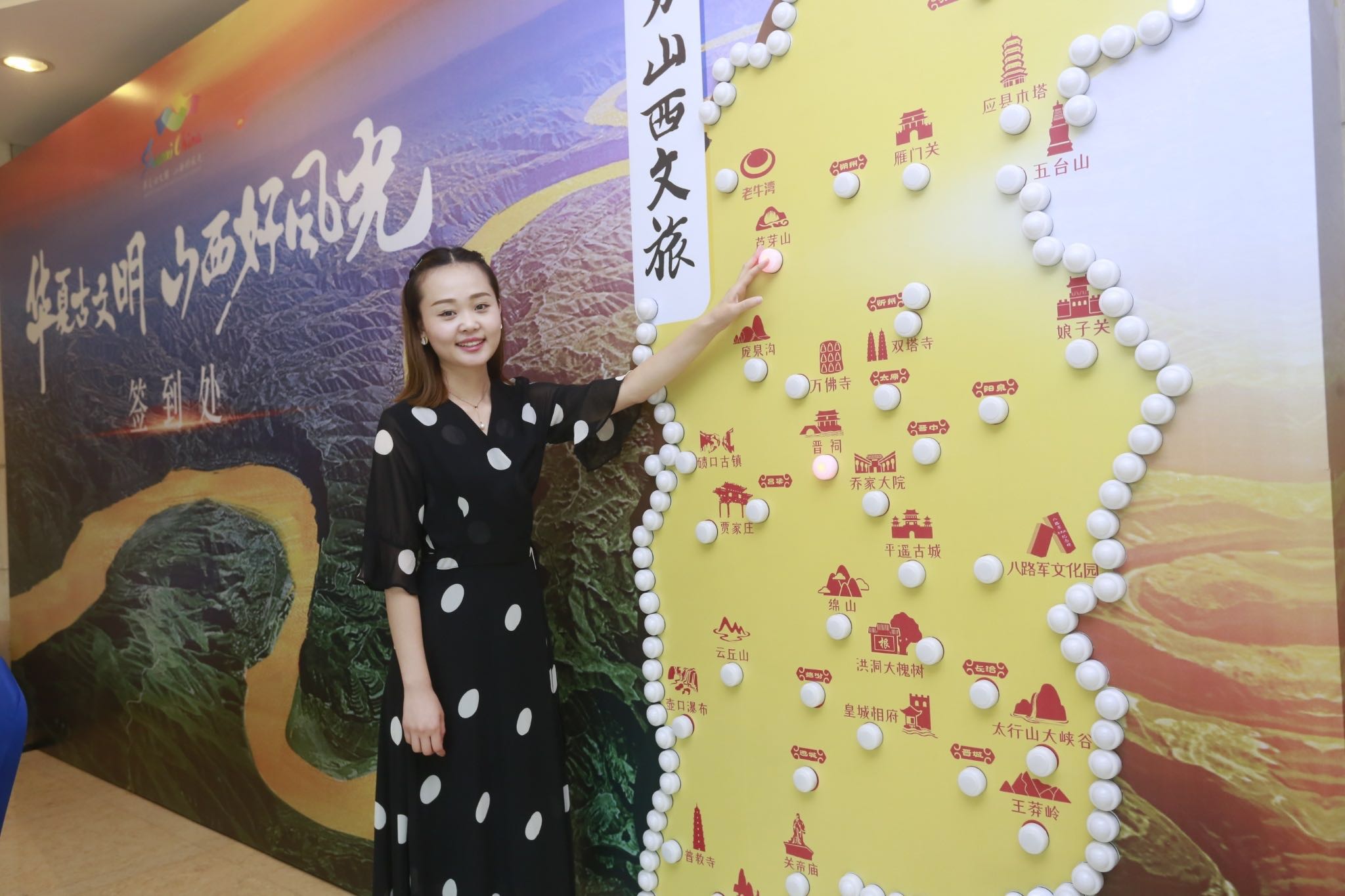 此次的推介會現場設計獨特、亮點頻出,讓參會嘉賓耳目一新。簽到主背景牆的一側是由上百個燈泡組成的山西旅遊地圖,來賓在簽到台簽到後,可以移步至這裡按下燈泡,與地圖合影留念,寓意點亮山西、助力山西文旅發展。山西文旅推介會的伴手禮也經過精心挑選,選擇了山西博物院的鎮館之寶——鳥尊的複製品贈送給來賓,展現山西深厚悠久的文化和歷史底蘊,並設計了多個串場節目,使整場推介會節奏緊湊,形式精彩豐富。