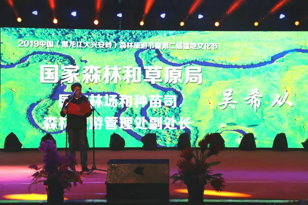 開幕式上,國家林業和草原局國有林場和種苗司旅遊管理處副處長吳希從,宣讀《關於同意將2019中國(黑龍江大興安嶺)森林旅遊節納入2019中國森林旅遊節系列活動範圍的函》。大興安嶺地區行署副專員蔣迎娟與國家林業和草原局林場種苗司(正司局級)副司長、國家林草局森林旅遊管理辦公室主任張健民分别致辭。