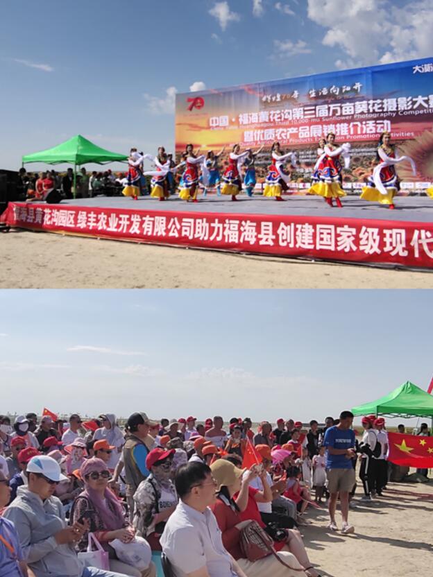 隨着現場全民健身生態徒步(起點開幕式現場,終點黃花溝園區生態園)和《我和我的祖國》快閃活動的開展,2019中國·福海黃花溝萬畝葵花攝影大賽也正式開始。