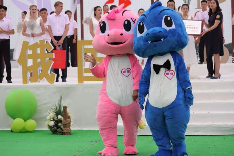 婚禮主題是「柒·望」,寓意着期許、展望、祝願……在建國70周年、中俄建交70周年之際,許下一個願望,做出一份期冀。活動在搖曳的舞步、激情的手鼓、中拉開帷幕,素有「中國第一龍鄉」美譽的邊城小鎮處處洋溢着喜慶祥和的濃厚氛圍。