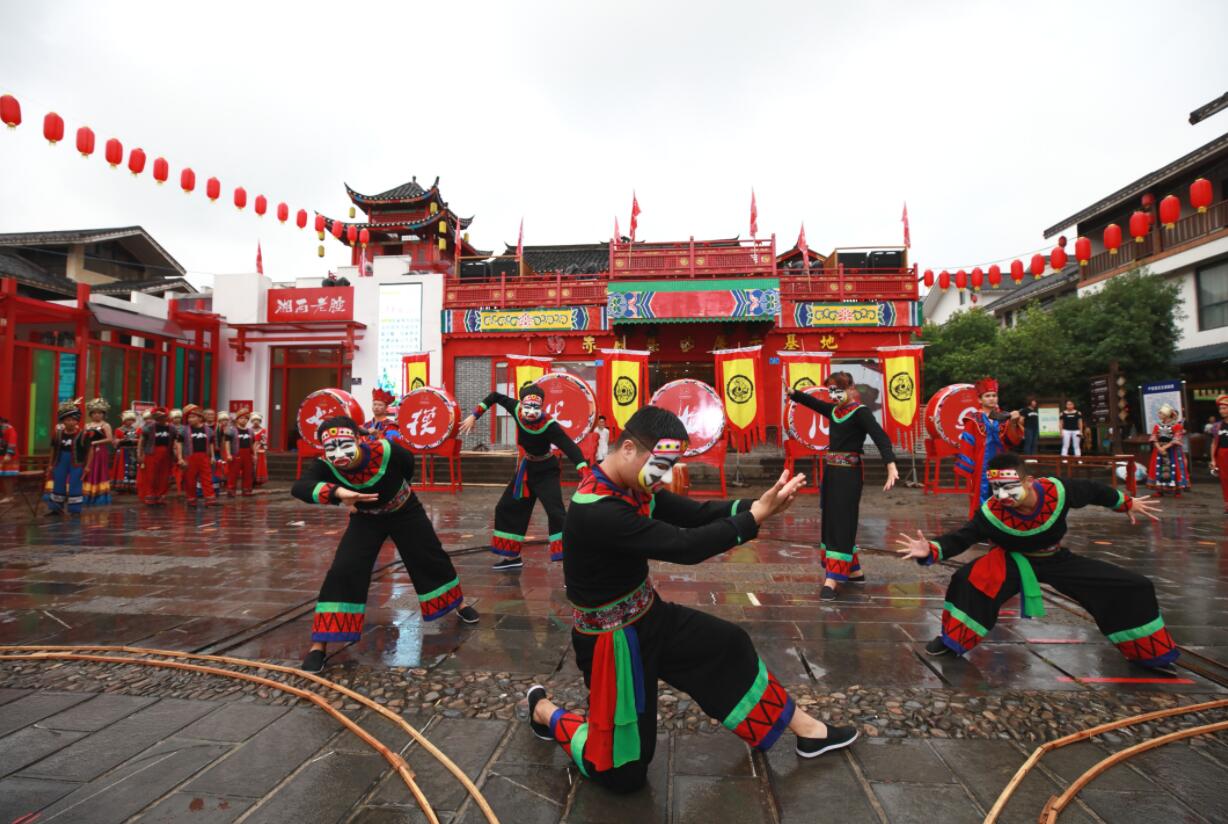 【香港商報網訊】對山歌、拋荷包、跳擺手舞、點畢茲卡愛火……農曆七月初七當天傍晚, 2019張家界民俗文化旅遊活動月閉幕式,暨“張家界市創建國家公共文化服務示範專案打造張家界地域特色多民族民俗文化新名片”系列活動——“七月七摸米女兒會”在湖南張家界武陵源區溪布老街擺手堂隆重舉行,上千名中外遊客與當地百名“美麗么姑”一起度過了開心浪漫的土家傳統民俗盛會。