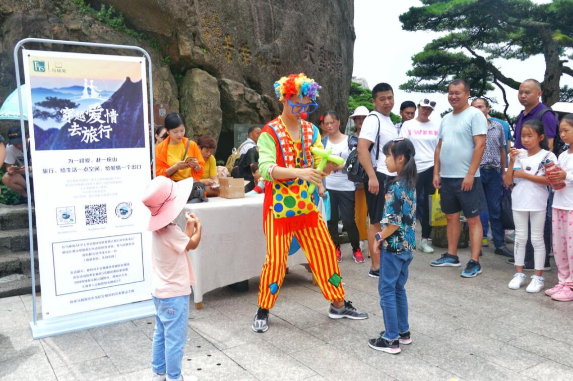 七夕當天,迎客松前擠滿了遊客。活動剛開始,惟妙惟肖的小丑表演就吸引了很多小朋友的目光。黃山景區也為參與互動的遊客準備了七夕禮物,令他們的黃山之旅增添了意外驚喜。據工作人員介紹,線下活動共持續3天時間,後面兩天遊客可在西海大峽谷小火車、北海雲亼山宿等網紅打卡點參與互動。