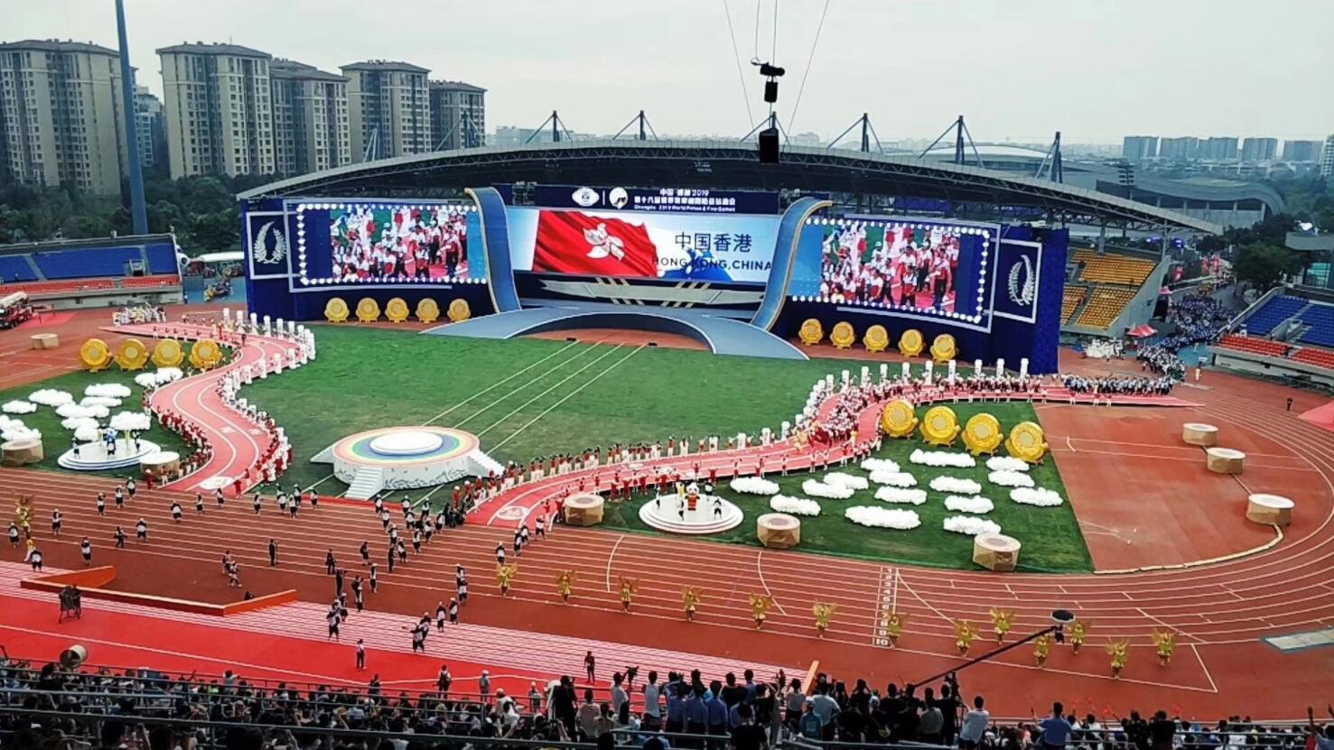 開幕式現場,當中國香港警隊入場時,現場大屏上出現了鮮紅的香港特別行政區區旗,飄揚的紫荊花和「中國香港」四個大字異常醒目。現場看台爆發出震耳欲聾的歡呼聲,全場觀眾起立向來自中國香港的警察及消防員代表致敬。據了解,中國香港代表隊將在本屆成都世警會上參加定向越野、半程馬拉松、警察兩項、龍舟、羽毛球、籃球、橄欖球等項目的角逐。
