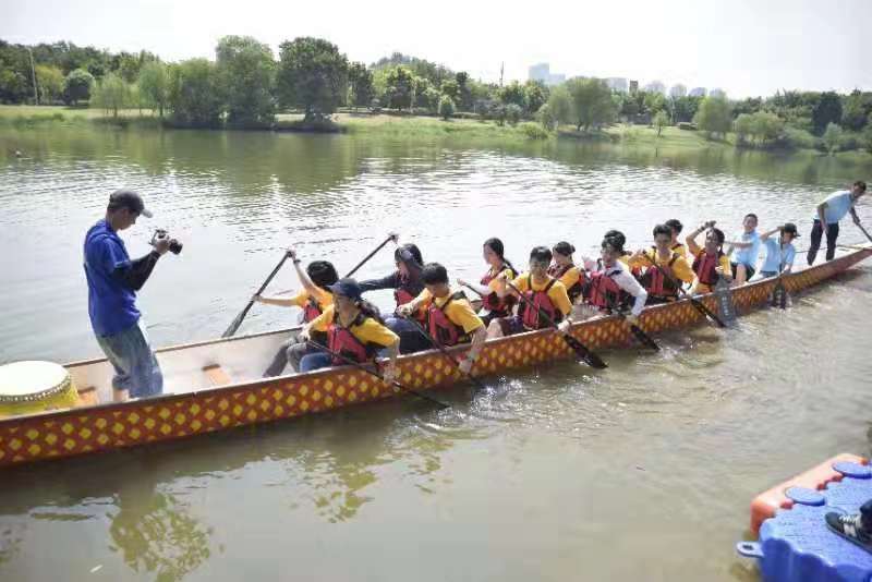 醒龍儀式後,活動正式拉開帷幕,來自兩岸的120名“龍舟少年”躍躍欲試,率先展開了別開生面的龍舟實操訓練。在專業教練的指導下,學員們紛紛領悟了技法,奮力揮槳,動作整齊而默契,龍舟的發力和軌跡隨之逐漸規律,舟行水面,破浪前行。體驗互動後,許多學員意猶未盡地表示:“龍舟會友”,通過龍舟競渡促進兩岸文化交流,才是龍舟文化體驗活動最重要的精神內涵。實操之余,兩岸學子還共同參觀了福州大學校史館和校園環境,領略以福州大學為代表的福州高校的發展歷程,感受大陸城市教育科研領域的蓬勃發展。