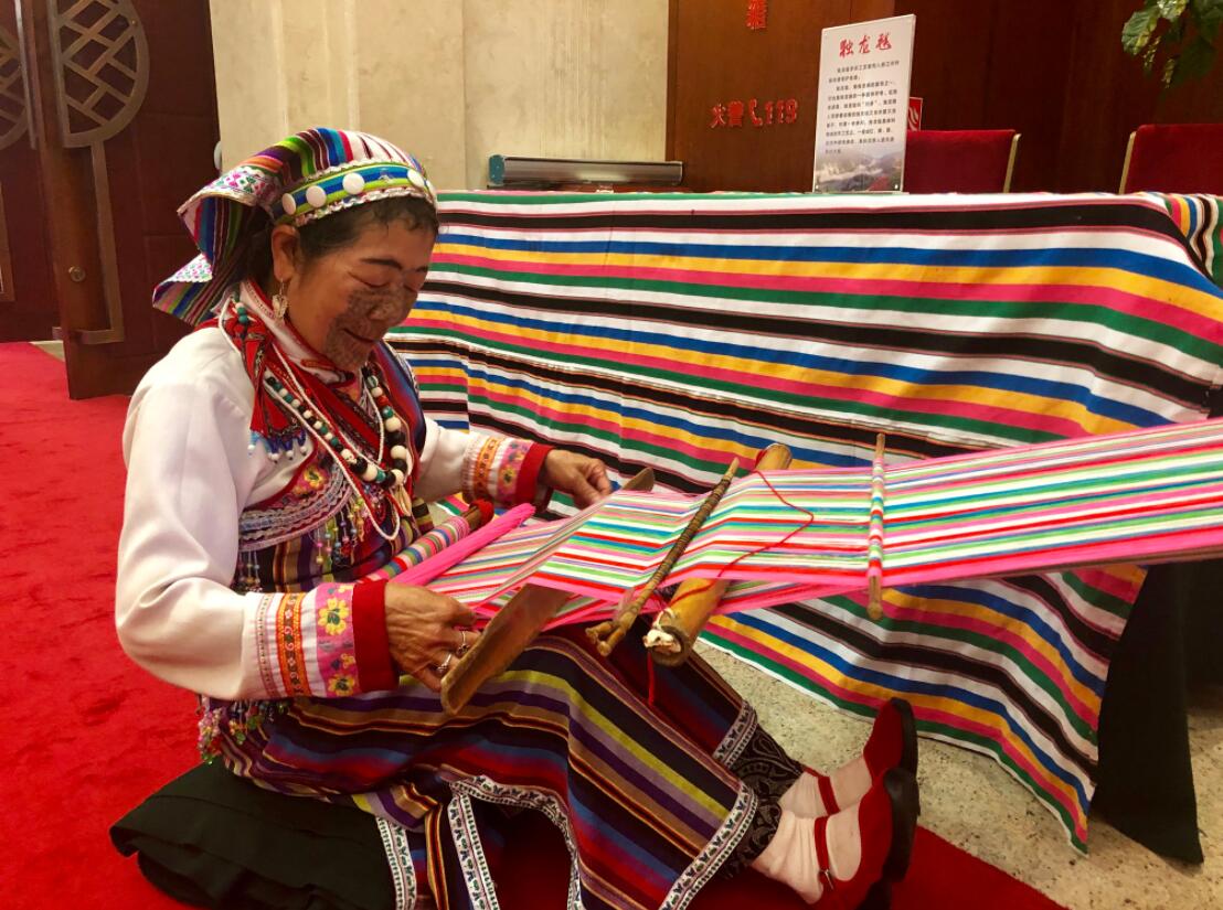 獨龍族紋面女正在織獨龍毯