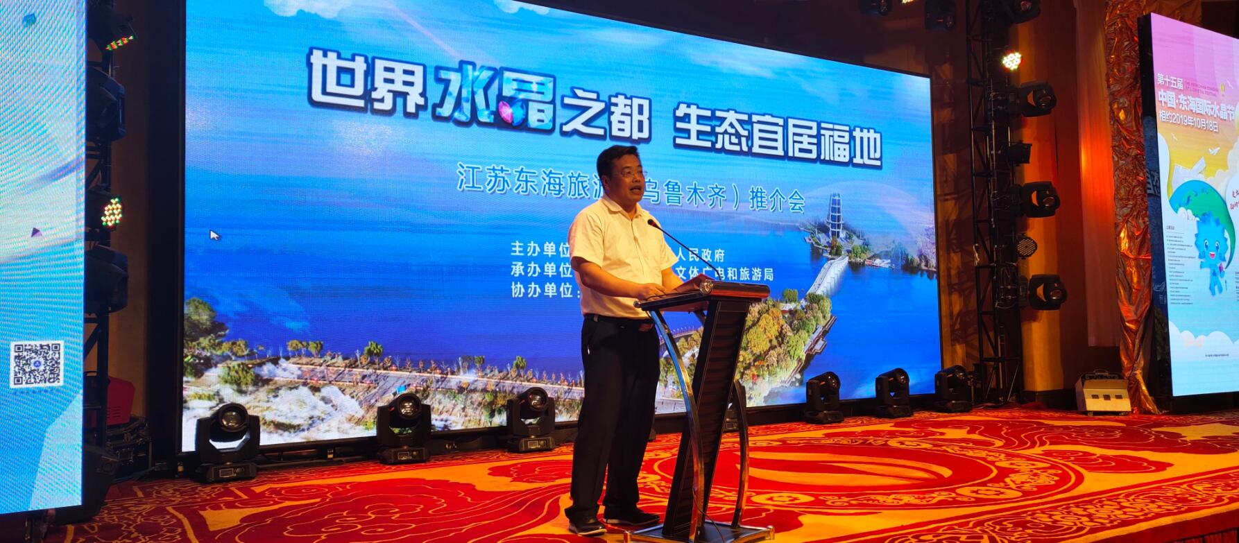 新疆國際博覽事務局黨組負責人、副局長阿德江·達吾提在致辭中說,東海旅遊推介會在烏魯木齊的成功舉辦,讓我們進一步了解東海的旅遊資源和優勢產業,同時也把新疆的旅遊資源以及風土人情展示給了遠道而來的朋友們。下步將組織商會企業家赴江蘇以及東海考察,讓更多項目落地開花。