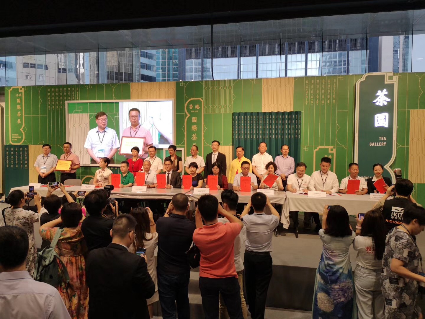 簽約儀式上,湘茶集團、白沙溪茶廠等4家紅茶企業、3家黑茶企業分別與香港客商簽訂了3900萬元的紅茶採購協議、5200萬元的黑茶採購合同,湘茶集團還與深圳鼎加弘思飲品舉行了揭牌儀式。