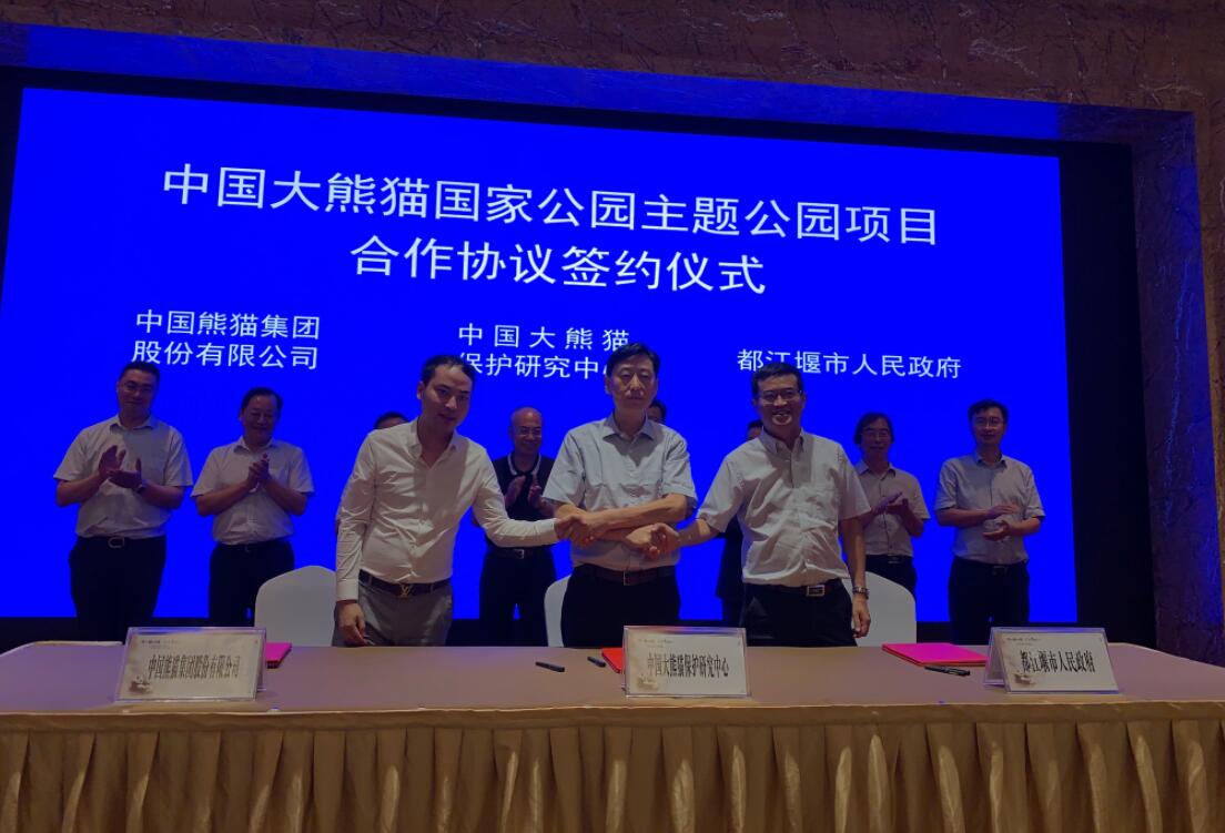 【香港商報網訊】8月21日,中國大熊貓國家公園主題公園項目合作協議簽約儀式在四川省都江堰市舉行。都江堰市政府副市長袁明代表都江堰市人民政府與中國大熊貓保護研究中心副主任張海清、中國熊貓集團股份有限公司青城山貫中項目總經理陳吉龍簽署《中國大熊貓國家公園主題公園項目合作協議》,該協議的簽訂標誌着中國大熊貓國家公園主題公園項目正式落戶三遺之城——都江堰。