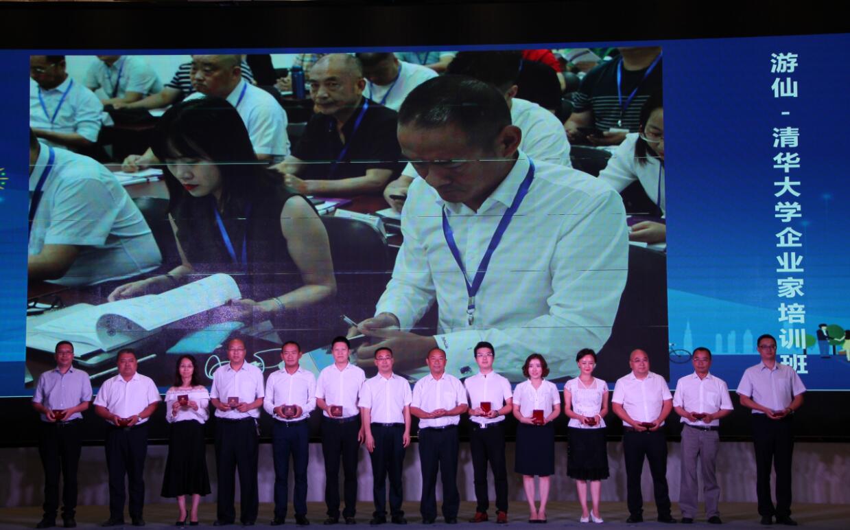 當天,現場發佈了遊仙區人才政策,遊仙區委常委、副區長楊守貴宣讀了《關於表揚資助2019年遊仙區第一批人才項目的通報》。參會領導為院士(專家)工作站及博士後工作站代表頒發資助資金牌,為引才育才「伯樂獎」及「課題式」引智項目頒獎。同時,主會場還進行了人才公寓鑰匙發放儀式、遊仙-清華大學2019企業家培訓班授徽章儀式、校地人才培養合作協議簽署。