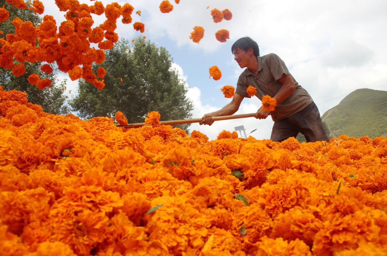 威寧花農曬萬壽菊