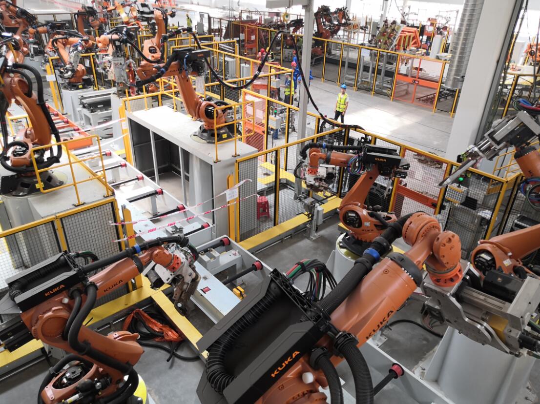 當天上午,小藍經開區經濟發展部部長蔡進彰帶領記者一行,來到江鈴股份富山新能源汽車基地。記者觀察到,每條生產線上看不到工人在工作,只見衝壓生產線、焊裝生產線、塗裝生產線上,引擎蓋和尾門所有的點焊、打膠、包邊都是機器在自如地運行。這場景引得記者紛紛拿出相機拍下這壯觀的一幕。