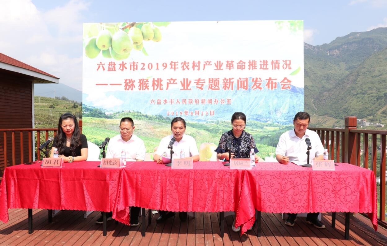當天發佈會上,六盤水市農業農村局局長李明以「涼都獼猴桃,香飄全世界」為主題向媒體介紹「涼都三寶」之一獼猴桃時說,該市獼猴桃從2000年引種的300畝發展到目前的20.08萬畝,佔全省種植面積57.07萬畝的35.2%。帶動農戶4.05萬戶,14.86萬人增收(其中:貧困人口0.75萬戶,2.3萬人),每年提供季節性工作崗位上百萬個,吸納產業工人1300多個(平均每家企業5-10個),並培養了一批新型職業農民。通過土地流轉、務工及分紅使大批老百姓脫貧致富,獼猴桃產業已經成為該市的主導產業、生態產業和富民產業。