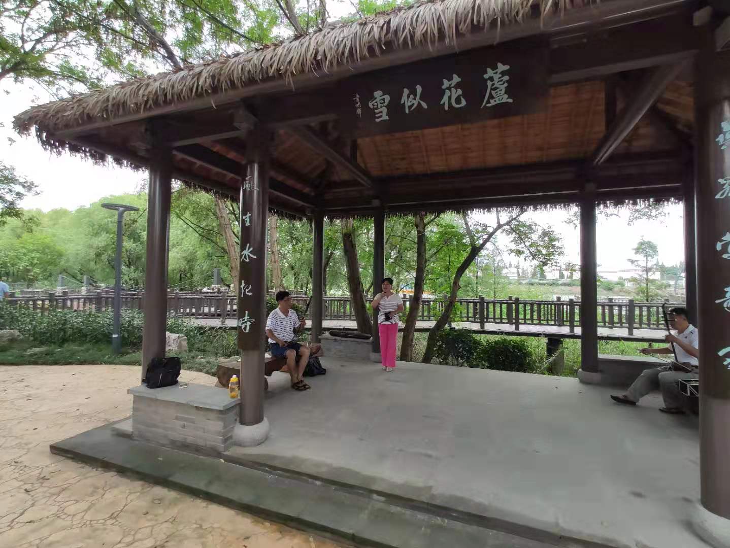 揚州民歌中樂公園位於江廣融合區頭道橋東岸線,是大運河保護、江淮生態大走廊建設的重要節點。總面積6萬平米的園區內有1800米健身步道,600米的濕地棧道,景點與休閑娛樂場地各近20處。公園負責人介紹,在建園前,這裡環境十分惡劣,到處是附近居民與物業丟棄的垃圾。「有些樹上被燒過的黑色痕迹到現在還有,我們把它保留了下來,也算是保留了記憶。」