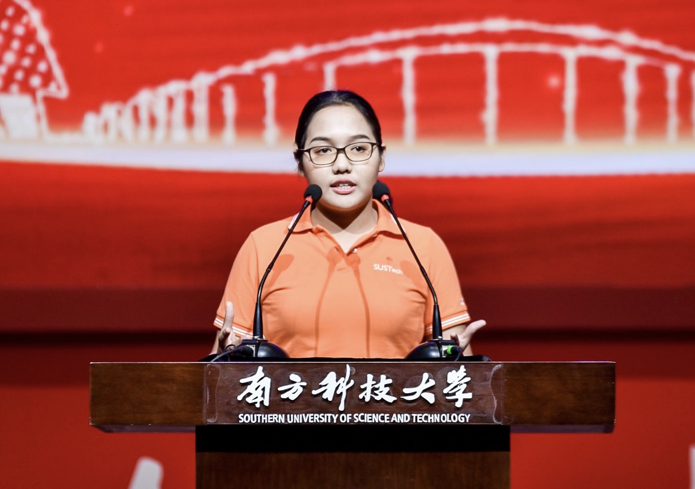來自柬埔寨的留學生Lyly Cheap在開學典禮上代表留學生髮言。Lyly Cheap說,來到南科大,她感到很激動也很榮幸,南科大是她的新家,也給她帶來新的機遇。她表示,南科大師生是他們的良師益友,國際留學生們將在南科大翻開生活的新篇章,他們一定會竭盡全力應對未來的挑戰,做最好的自己。