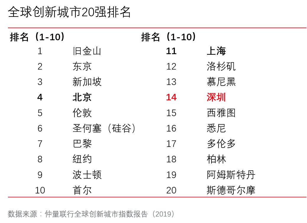 【香港商報網訊】記者 王曉蕾 報導:記者3日從仲量聯行獲悉,《全球創新城市指數報告》正式發佈,對全球100多座城市的創新能力及技術人才優勢進行量化分析,探討城市創新力與當地房地產市場表現之間的關係。報告顯示,深圳攜手北京、上海共同躋身全球創新城市20強榜單,位列第十四位,多項指標表現亮眼,其中,20到40歲之間的年輕人口比例榮登榜首;專利申請數量位居全球第二,僅次於東京;風險投資和研發支出分別位列第十二和十七位。