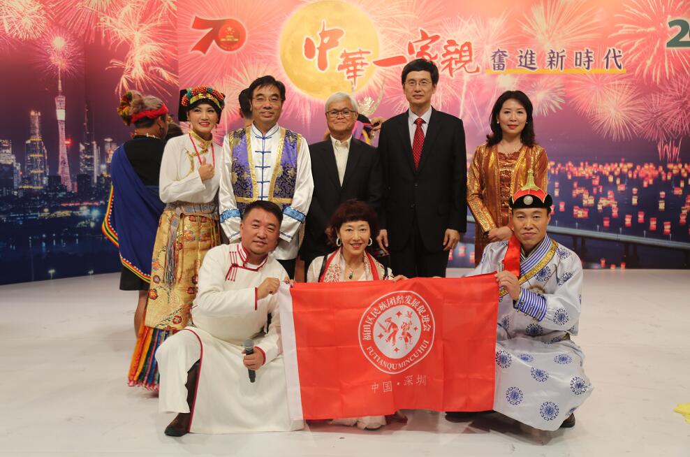 【香港商報網訊】8月29日由(澳門)中華民族團結促進會主辦的「中華一家親 · 奮進新時代——己亥年 ·海峽兩岸暨港澳地區各民族同慶中秋演出晚會」在澳門電視台綜藝二館舉行。今年以慶祝中華人民共和國成立70周年、澳門回歸20年的盛事和粵港澳大灣區發展,作為「中華一家親」交流活動和中秋晚會的主軸內容,來自北京、台灣、深圳、香港和本澳逾百名演出和工作人員參與,深圳市福田區民族團結髮展促進會會長孔麗,副會長蘇偉、莎莎等一行六人受邀參加活動。