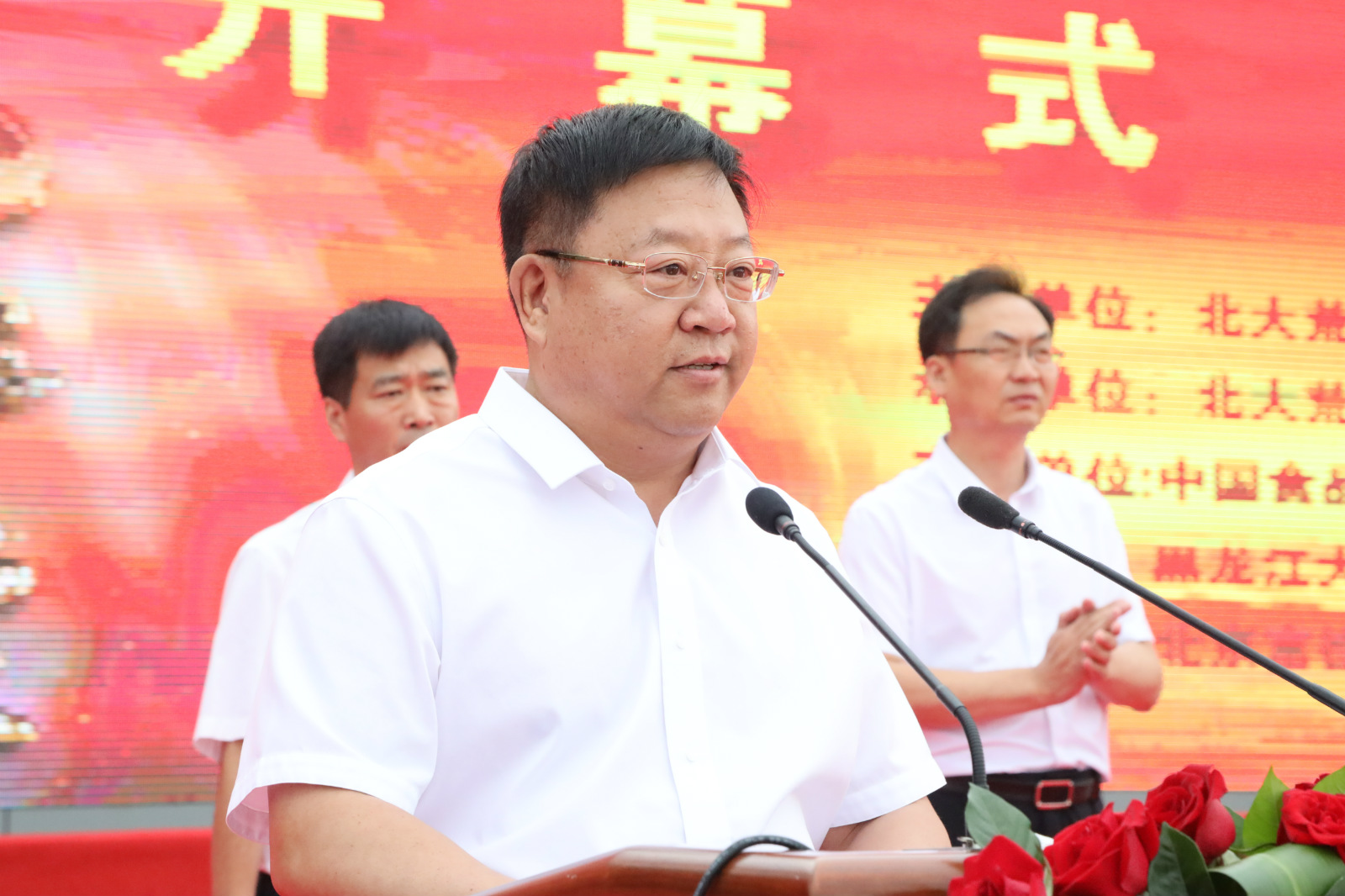 開幕式上,北大荒集團九三分公司(管理局)局長王曉春致歡迎辭。王曉春說,九三是中國綠色大豆之都,因盛產優質大豆而聞名全國。近年來,在省委省政府和總局黨委的正確領導下,在中豆委各位專家學者和企業家的大力支持下,九三充分發揮資源優勢,以市場需求為導向,積極發展功能性食品大豆,做大做強大豆產業,提升大豆價值鏈、產業鏈,九三大豆核心競爭力不斷提高,知名度和影響力不斷擴大,品牌價值達到22.91億元,名列地標產品大豆類全國第一。還先後獲得了「國家地理標誌保護產品」「中國百強農產品區域公用品牌」「全國綠色農業十大最具影響力地標品牌」等諸多殊榮,並作為唯一大豆品牌入選「首屆中國農民豐收節百個農產品品牌」。