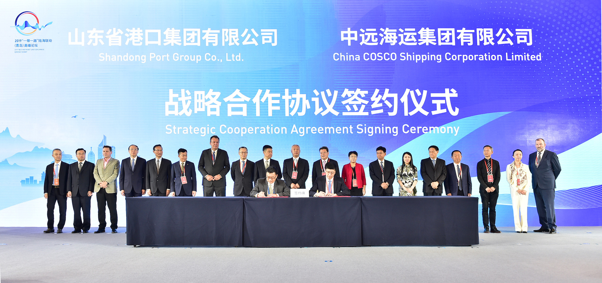 山東省港口集團有限公司與中國遠洋海運集團有限公司、中國交通建設集團有限公司、上海國際港務(集團)股份有限公司、中國鐵路濟南局集團有限公司分別在會上簽署了4項戰略合作協議,山東港口集團青島港、日照港、煙台港、渤海灣港分別與合作夥伴簽署了8項戰略合作協議。