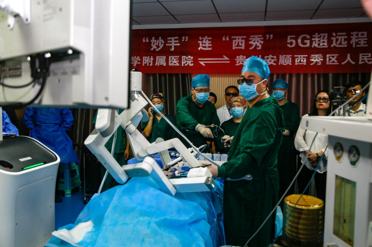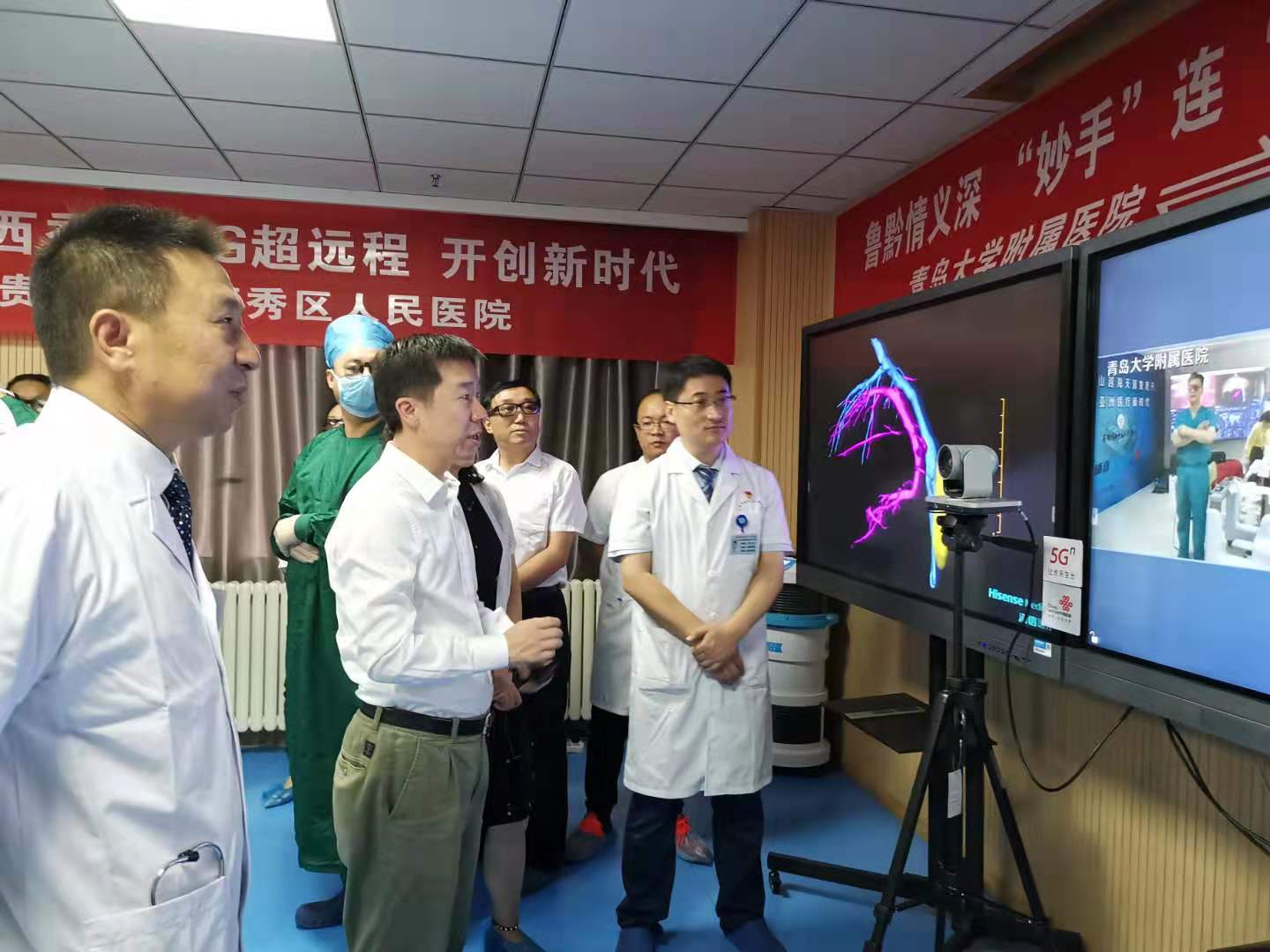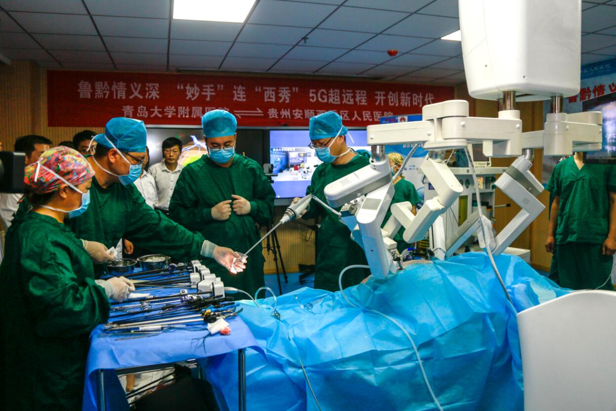 手術當天,青大附院副院長牛海濤教授帶領團隊成功開展國內首例自主研發「妙手」微創手術機械人進行遠程手術,借力聯通5G技術,醫院實驗室的「妙手」系統,精確到達手術部位,並順利完成對病灶的精細處理,為身處3000公里外的貴州省安順市西秀區人民醫院實驗室中的實驗動物實施了遠程精準手術。本次手術為直接操控機器而非遠程指導,在國內有一定的技術前瞻性,具有很好的社會效益,同時深化醫患關係、加強5G應用推廣,得到貴州省委副書記、省長諶貽琴的認可。