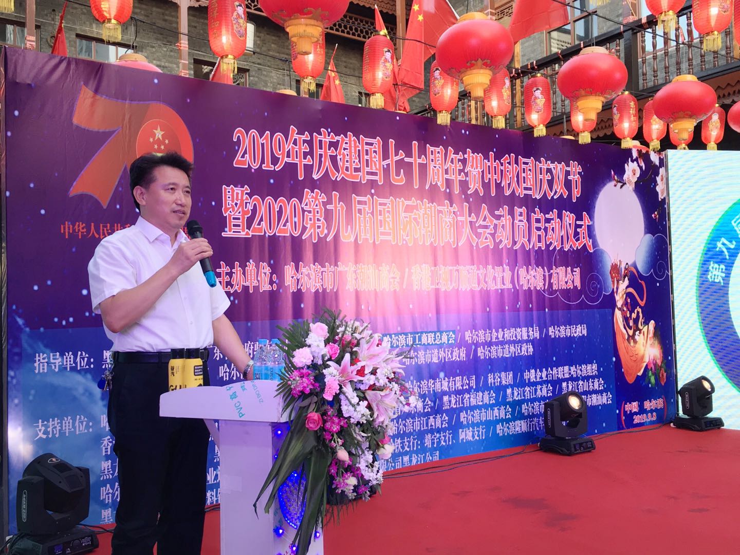 【香港商報網訊】記者 張曉磊 報導:9月8日晚,由哈爾濱市廣東潮汕商會與香港衛視萬順通文化置業(哈爾濱)有限公司共同主辦的慶祝新中國成立70周年賀中秋國慶雙節暨第九屆國際潮商大會動員啟動儀式在道外區舉行。此次活動拉開哈爾濱市廣東潮汕商會與合作單位及會員單位合作共贏的序幕,造勢預熱。