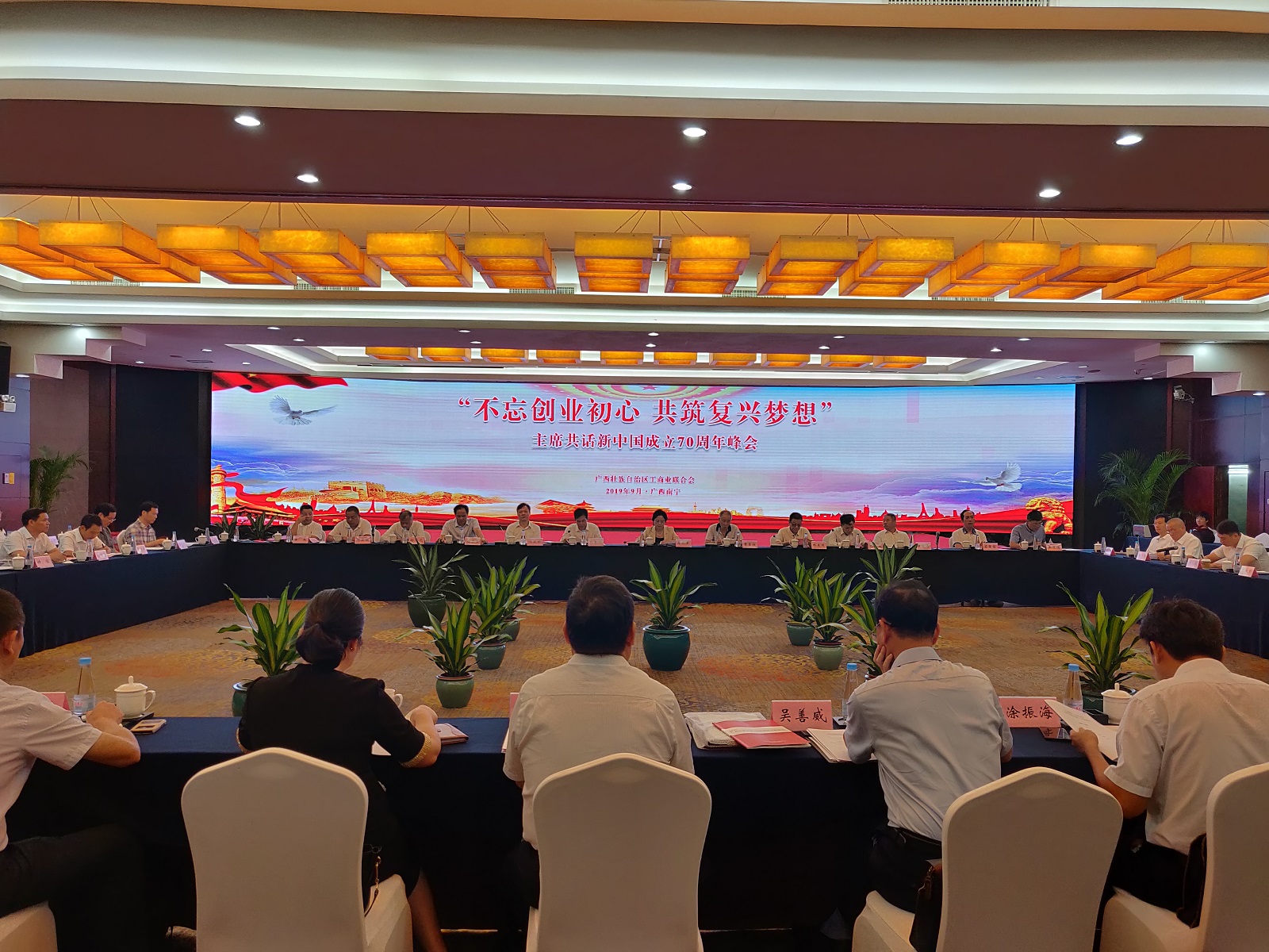 【香港商報網訊】9月9日,「不忘創業初心 共築復興夢想」主席共話新中國成立70周年峰會在廣西南寧市召開。會議傳達了全國工商聯十二屆三次常委會議精神,與會的廣西壯族自治區工商聯離任及現任兼職副主席、副會長企業家們結合企業和個人成長經歷暢談新中國成立70周年偉大成就的感想。各市工商聯主席、書記就業務工作作典型經驗交流。