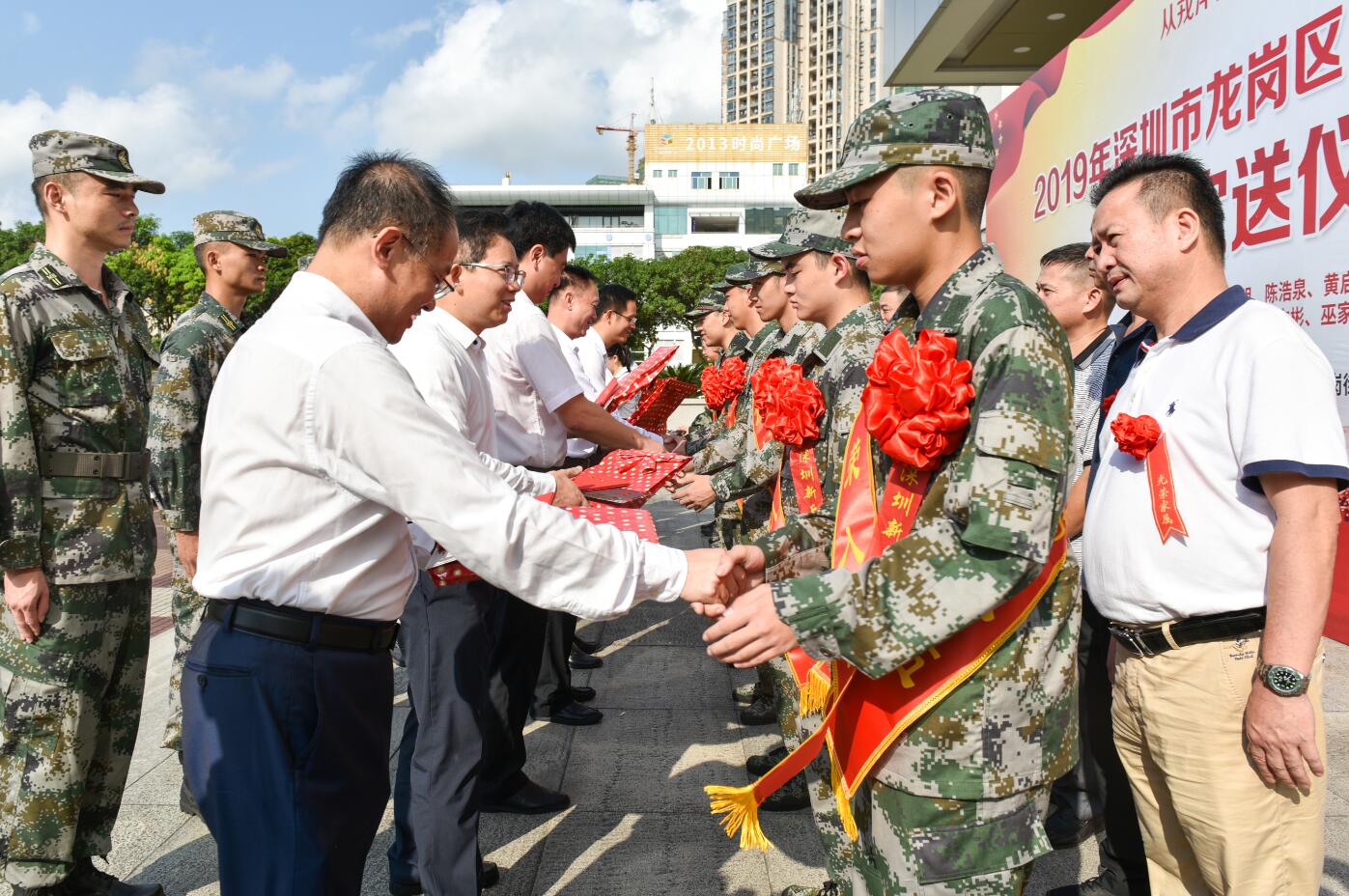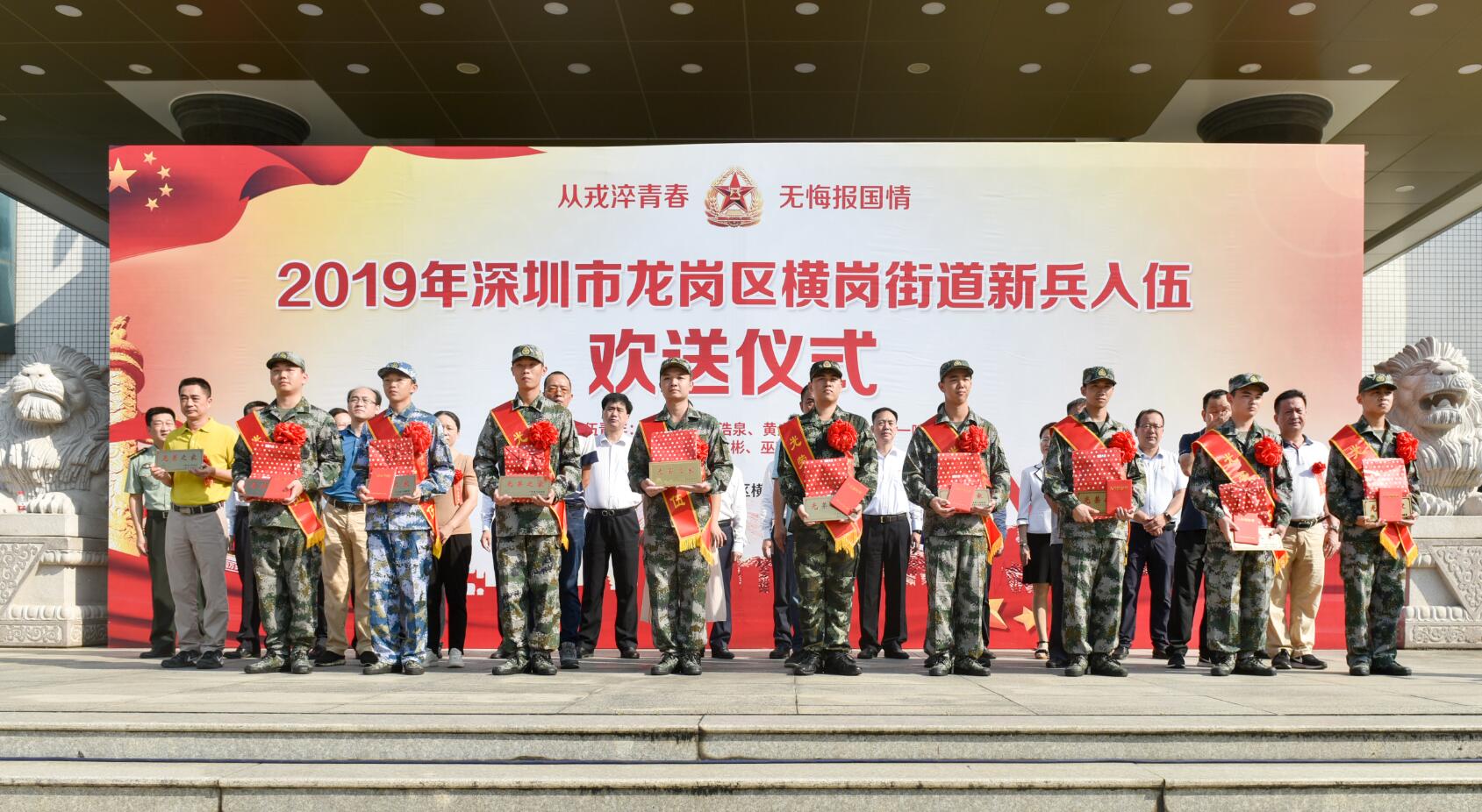 【香港商報網訊】9月10日,深圳市龍崗區橫崗街道舉行新兵入伍歡送儀式,為今年即將步入軍營的10名應徵青年送行。街道班子成員、社區書記、大院工作人員、社區居民代表及新兵家屬參加了歡送儀式。