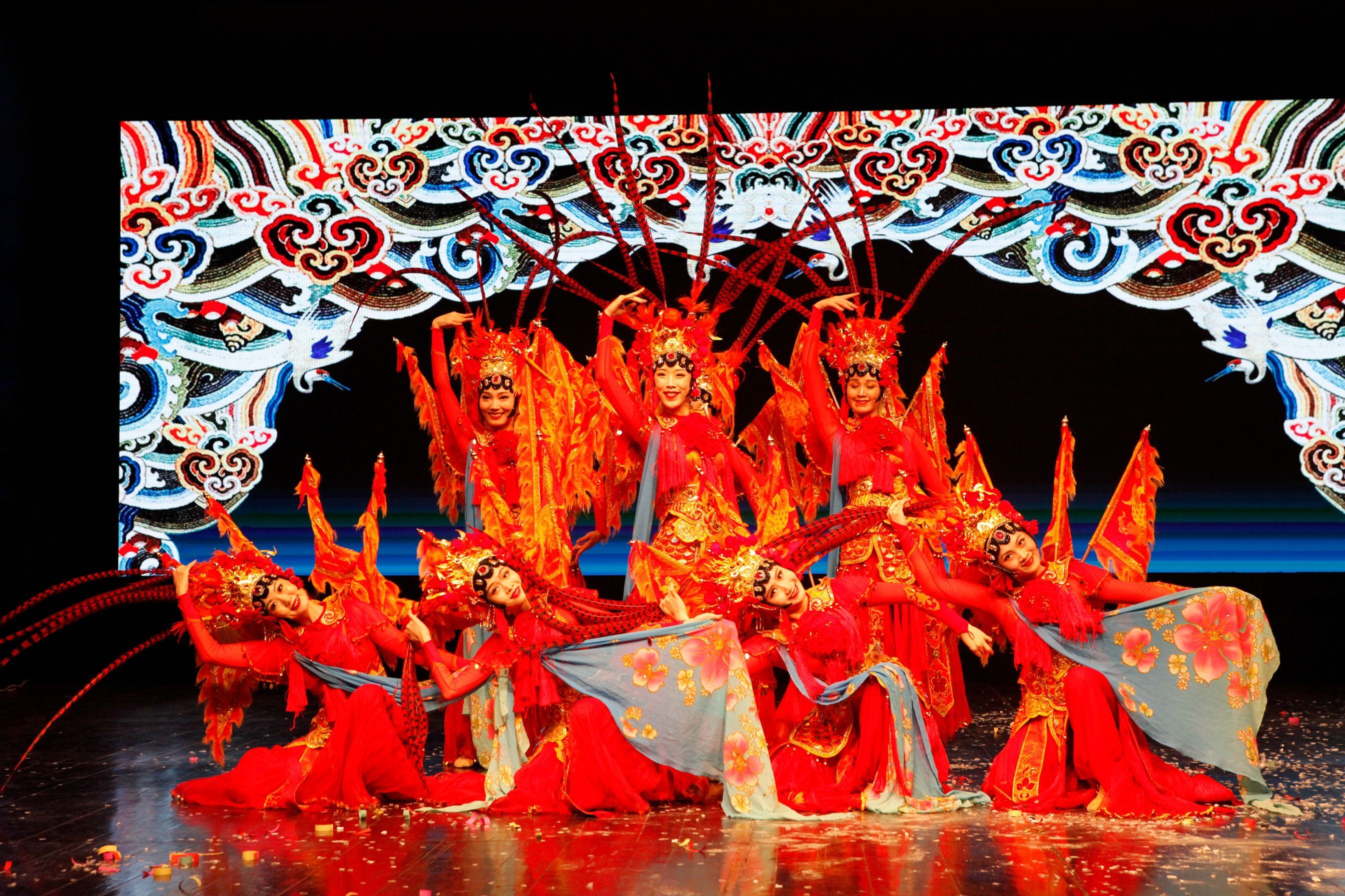 曾登上2019央視春晚舞台的《英姿》一出場就氣度不凡,贏得滿堂喝彩。大氣、奔放、濃郁的四川元素,靈動、俏麗的翎子功,由成都市文化藝術學校帶來的表演令滿堂流光溢彩,英氣干雲,展示出了中華大國的風範。