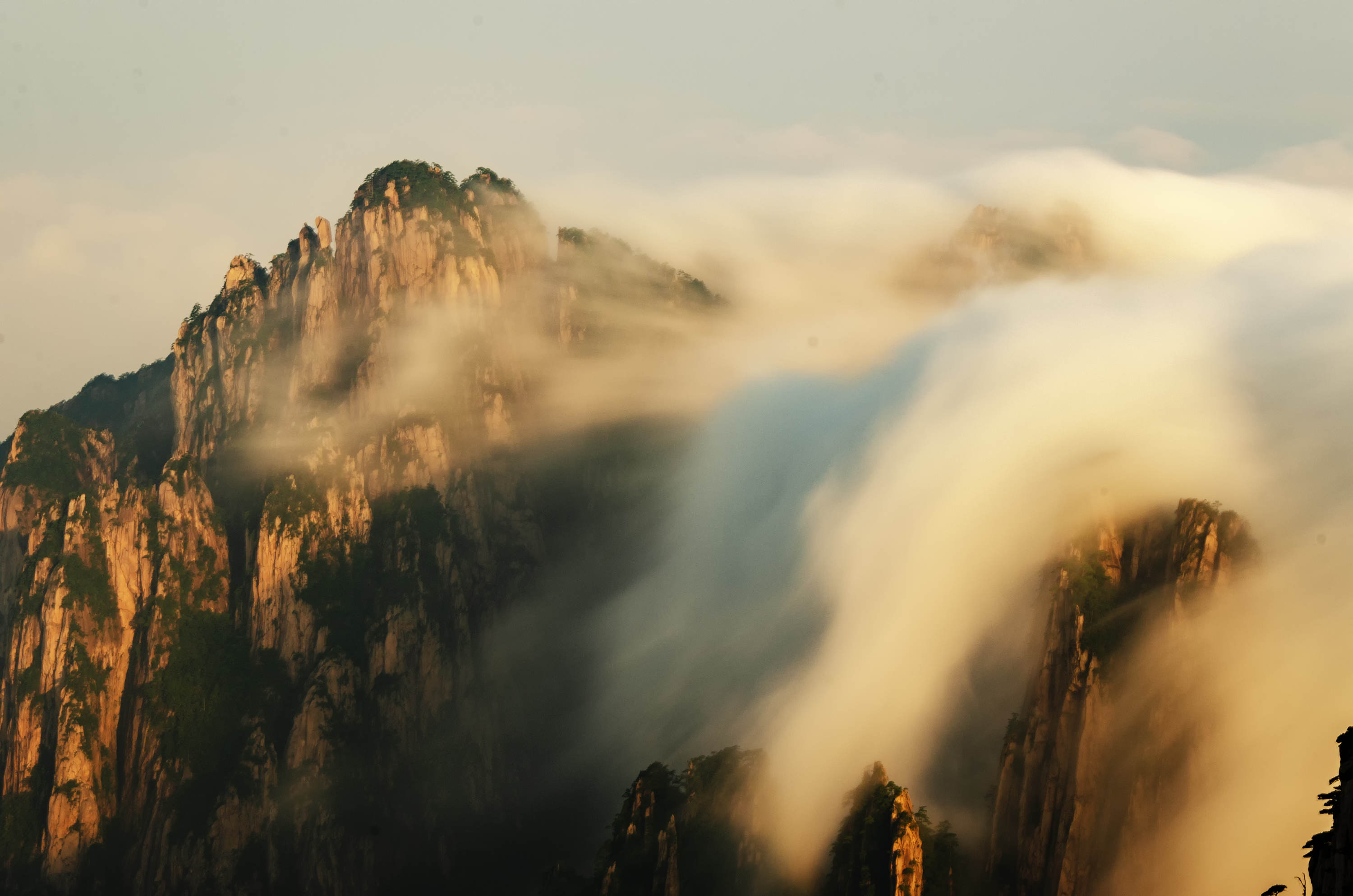 小長假最後一天清晨,景區出現壯麗雲海景觀,座座山峰在雲海中若隱若現,美輪美奐,蔚為壯觀。來自江蘇的遊客陳君此番和家人同游,美景令他們直呼大飽眼福:“第一次上黃山就遇上了如此秀麗的黃山秋景,感覺自己真的很幸運。”