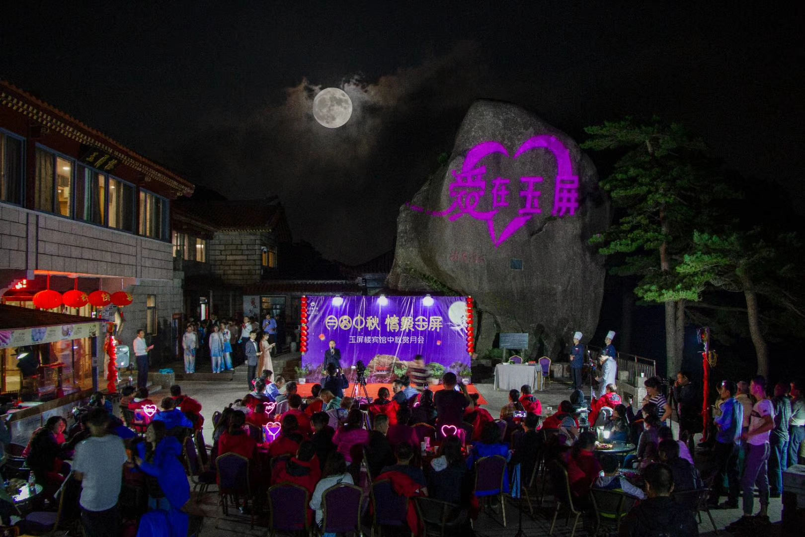 畫宮燈、做月餅、著漢服、猜燈謎、賞表演,濃情中秋夜,山巔共團圓。“白天看景、晚上看戲”,黃山之巔各家酒店賓館假期活動不停。遊客們一邊看表演,一邊賞明月,伴著松濤陣陣,別具一番別樣情趣。