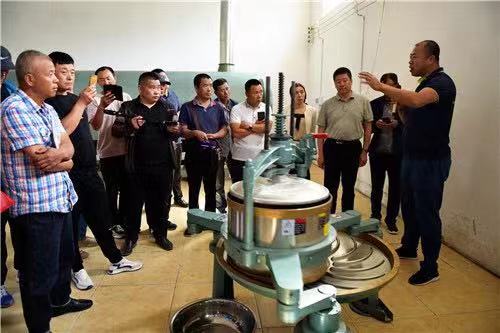 呼瑪縣招商引資企業昌茂源農業發展有限公司技術人員,向前來參觀學習人員介紹蒲公英、大麥等茶製品生產工藝流程