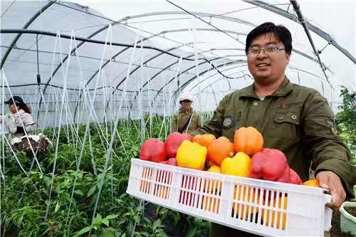 呼瑪縣省級現代農業科技園區農業科技人員在棚室內收穫出口俄羅斯的彩椒