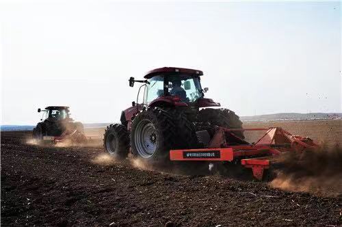 從2005年至2018年,呼瑪縣共落實農機補貼資金3409萬元,帶動農戶自籌資金8928萬元投入農機具更新,14年來全縣共補貼機具1621台套,其中補貼大型拖拉機767台,聯合收割機125台,累計受益農戶達1318戶。圖為呼瑪縣成雲現代農機合作社的兩台凱斯210大馬力拖拉機在進行集深松、耙地、旋耕為一體的春耕作業場景。