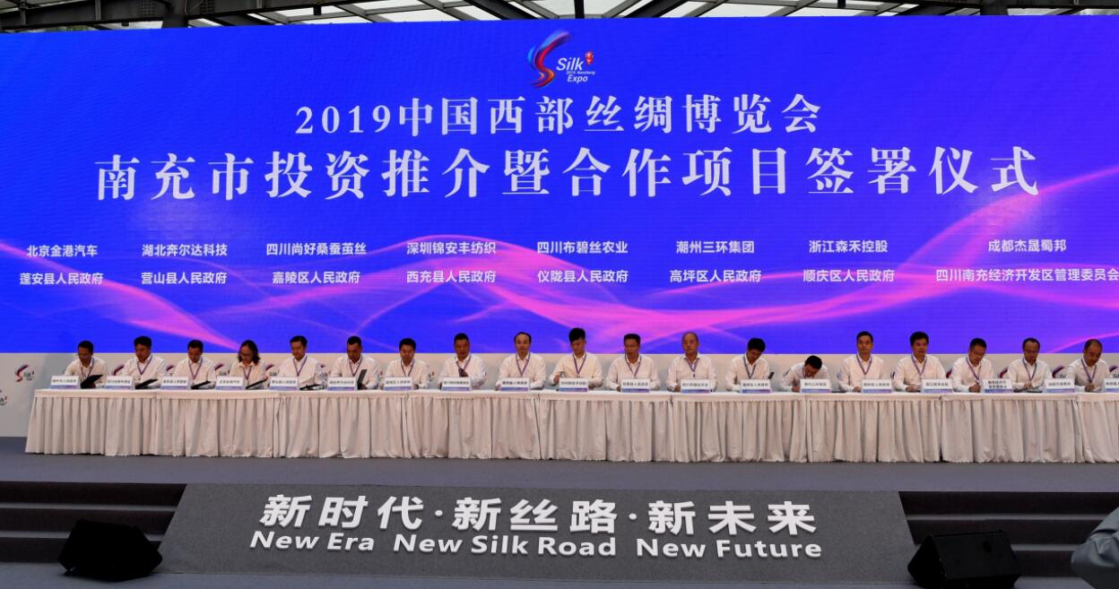 在當天的開幕式現場還舉行了隆重的項目推介和簽約儀式,推介會共推出100個投資促進重點項目,投資總額2874.11億元。通過各縣(市、區)、南充經開區前期的對接和洽談,本次絲博會南充市共促成現場簽約項目30個,協議總投資315.4億元,涉及絲紡服裝、現代農業、電子信息等多個領域。(梅超)