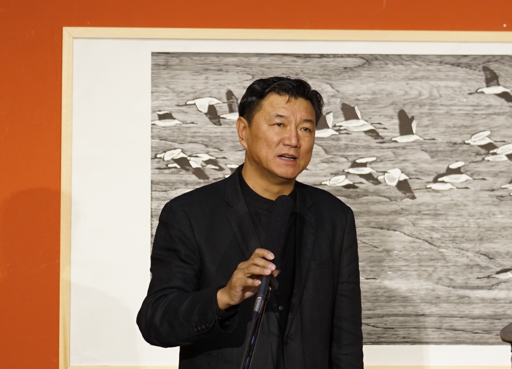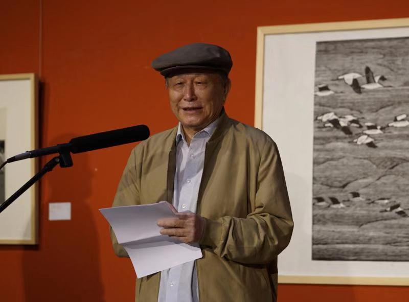 宋先生激動地講到,「今天對我個人來說不同尋常,因為我在新時期的版畫創作是從黑土地上起步的,我出生在遼寧,但更偏愛黑龍江,這裡的歷史和地域更有東北特色,也有畫面感。出生在什麼地方,也就註定了一生的宿命。我在這塊土地上,受過「人之初 性本善」的言傳身教; 經歷了新舊社會的變革; 歷經歲月的滄桑,深切體悟到人類命運與藝術人生息息相關。面對新形勢下的新問題,如何認識和把握當代藝術的精神性和文化性,便成為這一代人首先必須調整學術立場和思想方法。新時期的藝術,迎來回歸審美的啟航,從事靈魂工程的探索者隨之要迎接諸多挑戰。(王琳 張曉磊)