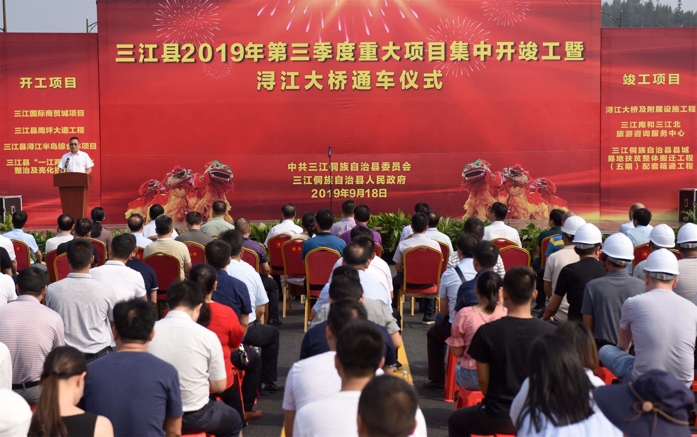 三江侗族自治縣縣委副書記、縣長蘭美清在致辭中表示,今年是新中國成立70周年,是打贏脫貧攻堅戰、全面建成小康社會的關鍵之年,全縣上下要採取務實、高效、創新的工作措施,全力推進項目建設。各項目施工單位要不斷加快項目建設速度,力促開工項目早實施、早竣工,竣工項目早投產、早見效。