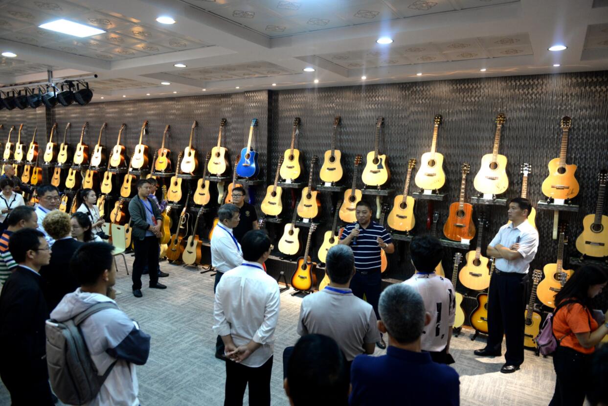 當天上午,嘉賓一行前往鈺豐樂器(正安)有限公司、遵義市馬氏吉他製造有限公司、貴州貝加爾樂器有限公司和遵義市神曲樂器製造有限公司等參觀吉他生產的一系列過程,並聽取相關公司負責人介紹貴州正安中國吉它製造之鄉如何助推村民脫貧攻堅緻富的經驗。