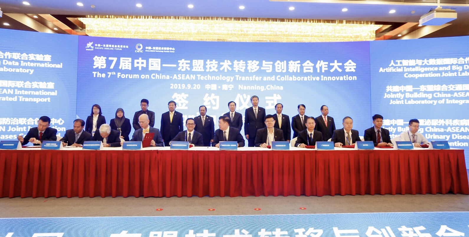 當天還進行了「中國-柬埔寨科技創新合作與技術轉移諒解備忘錄」、「共建中國—東盟互聯網應用技術聯合創新中心」、「共建廣西—老撾傳統藥物研究聯合實驗室」、「中國—東盟空間信息數據關鍵技術及應用」、「人工智能與大數據國際合作聯合實驗室」、「共建中國—東盟綜合交通國際聯合實驗室」、「共建中國—東盟泌尿外科疾病防治聯合創新中心」等7個項目的簽約儀式。