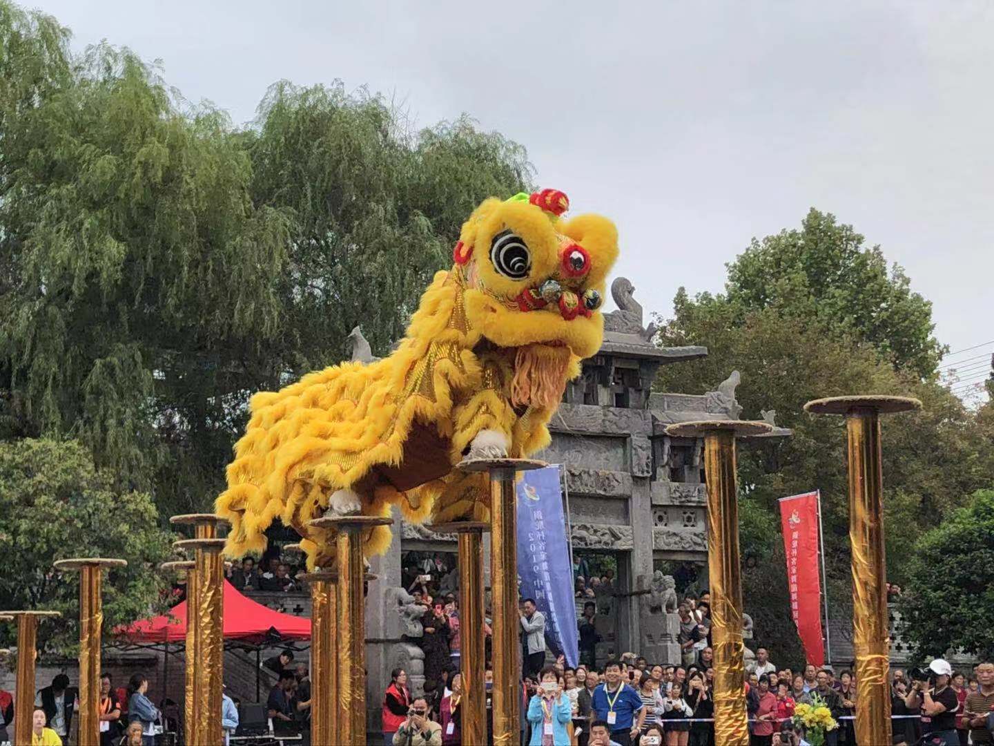 活動現場,馬來西亞梁氏麒麟隊、印尼客屬聯合總會舞獅團、坂田永勝堂麒麟隊、廣西正心堂龍獅團、江西萍鄉客家女子龍燈隊、鞏義小相獅舞團依次上場,6支隊伍,6場表演,精彩紛呈,令人目不暇接。鞏義本土小相獅舞更是在最後為觀眾上演了一出在二十米塔梯上的精彩表演,點燃全場氣氛。