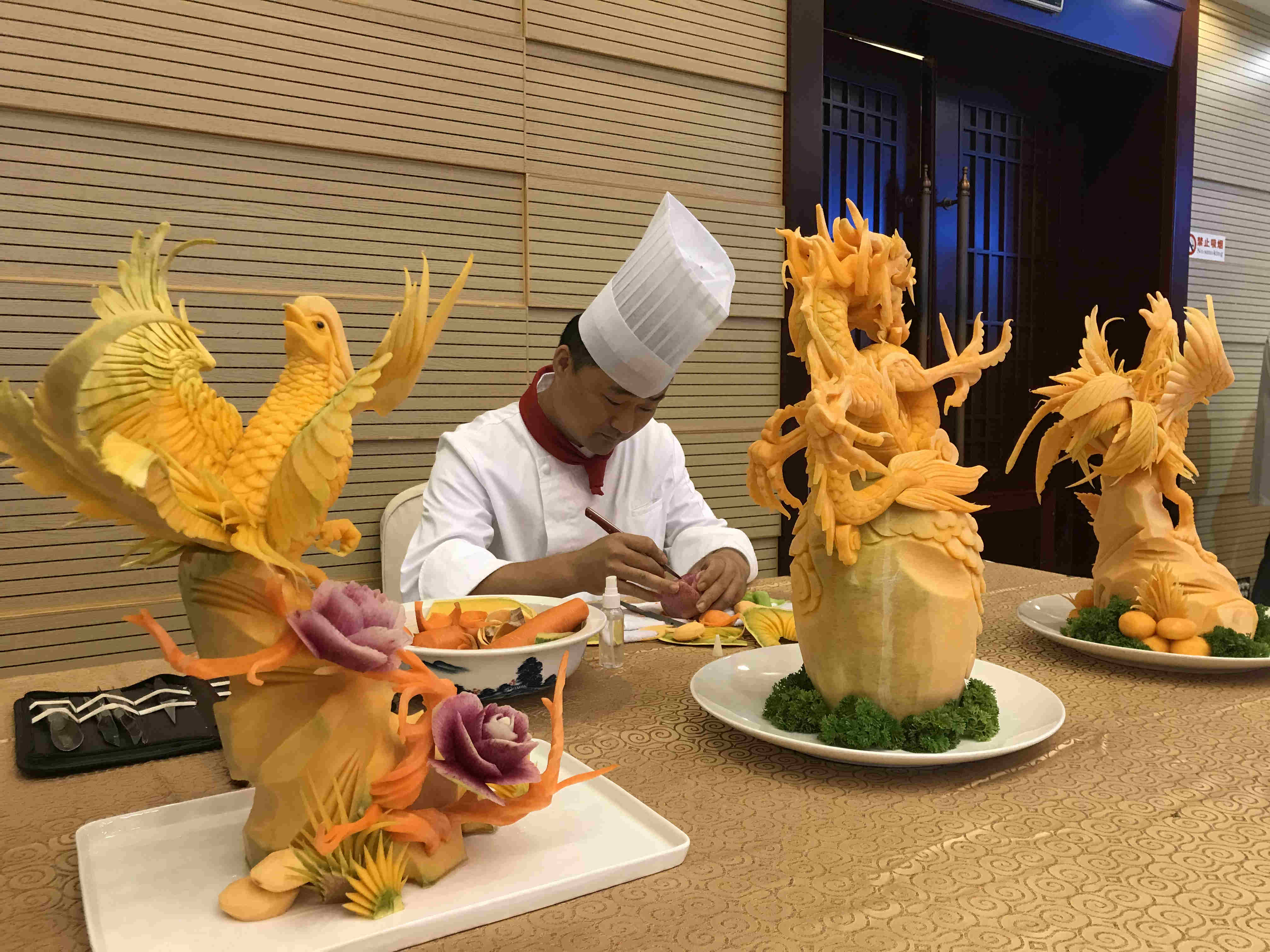 淮安國信大酒店的行政總廚朱官巍的食品雕刻