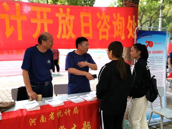 活動現場,河南省統計局、國家統計局河南調查總隊向學院贈送了《中國統計年鑒》《河南統計年鑒》《河南調查年鑒》和河南改革開放40年、河南70年、人口普查、經濟普查、農業普查等系列統計圖書資料100餘套;特邀國家統計局統計科學研究所首席統計師、大數據研究室主任、高級統計師姜澍做專題講座;河南省統計局、國家統計局河南調查總隊、河南信息統計職業學院精心製作30塊展板,展示新中國成立70年河南各個領域發展成就,介紹專業知識、學院發展情況;設置4個諮詢台,由省統計局相關業務負責同志現場接受媒體、老師和同學們的諮詢。