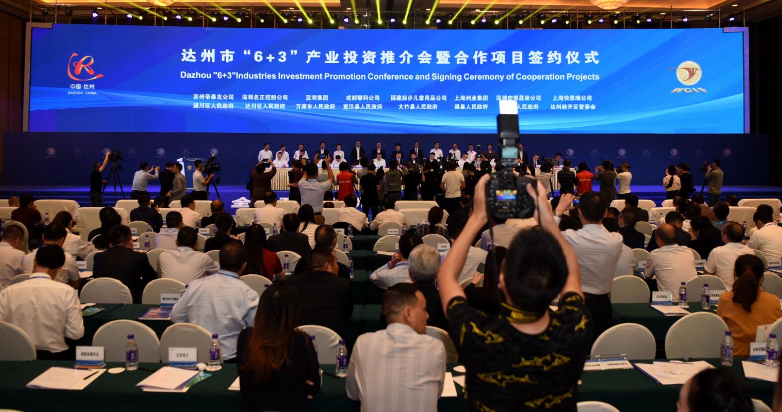 以「全域開放新機遇 合作共贏新未來」為主題的達州市「6+3」產業投資推介會暨合作項目簽約儀式現場