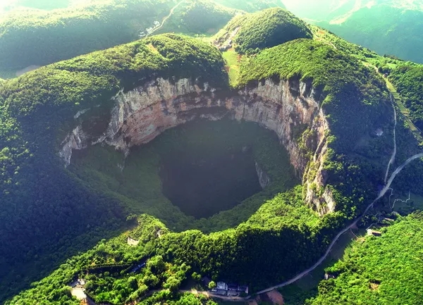 被譽為“天下第一坑”的小寨天坑。發展旅遊成為奉節縣脫貧的重要路徑