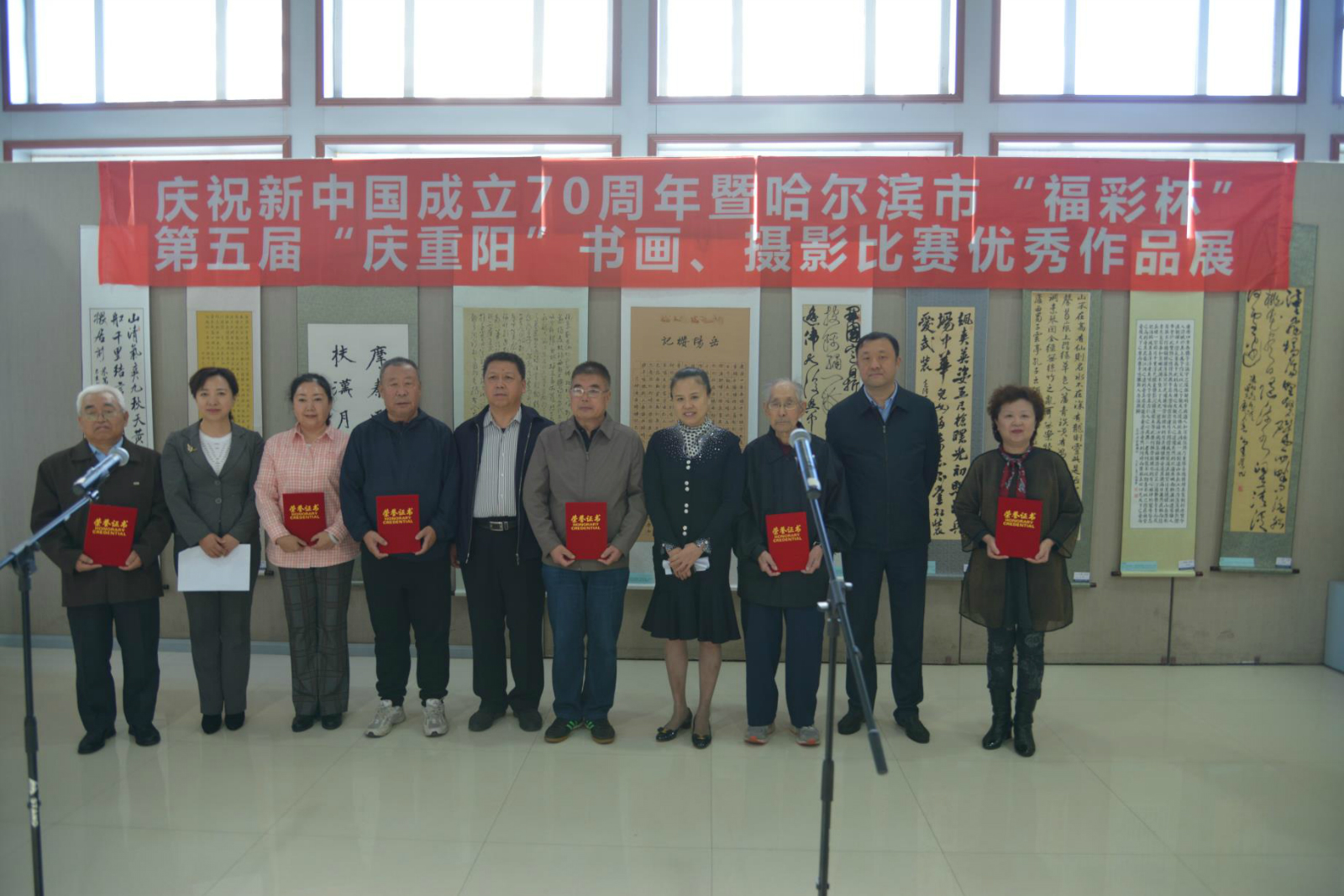 【香港商報網訊】記者 張曉磊 報導:為隆重慶祝新中國成立70周年,大力弘揚中華民族優秀傳統文化,9月24日上午,由哈爾濱市民政局、哈爾濱市文學藝術界聯合會、哈爾濱老年人大學主辦、哈爾濱老年教育集團主辦,黑龍江省老年日報、哈爾濱市美術家協會聯辦,哈爾濱市老年大學協會承辦,哈爾濱市福利彩票發行中心協辦的慶祝新中國成立70周年暨哈爾濱市「福彩杯」第五屆「慶重陽」老年書畫、攝影比賽優秀作品展開幕式在哈爾濱老年人大學美術館隆重舉行。哈爾濱老年人大學黨組書記、校長張麗華,副校長叢肖南,紀檢組長王學軍,黑龍江省老年日報副主編李佳,哈爾濱市教育局高教職成處調研員滕春傑,哈爾濱市民政局福利彩票發行中心宣傳部長吳春陽,副部長任海濤出席了開幕式。部分獲獎作者代表及100餘名學員參加了本次開幕式。