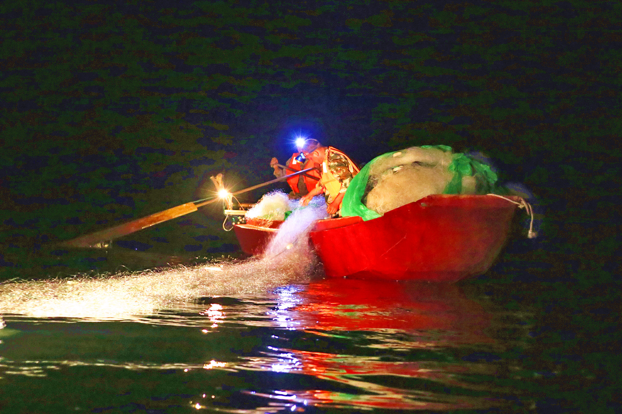 經過近半年時間的等待,北京密雲水庫迎來開漁季。圖為25日夜的密雲水庫庫區深處,漁民開始下網捕魚