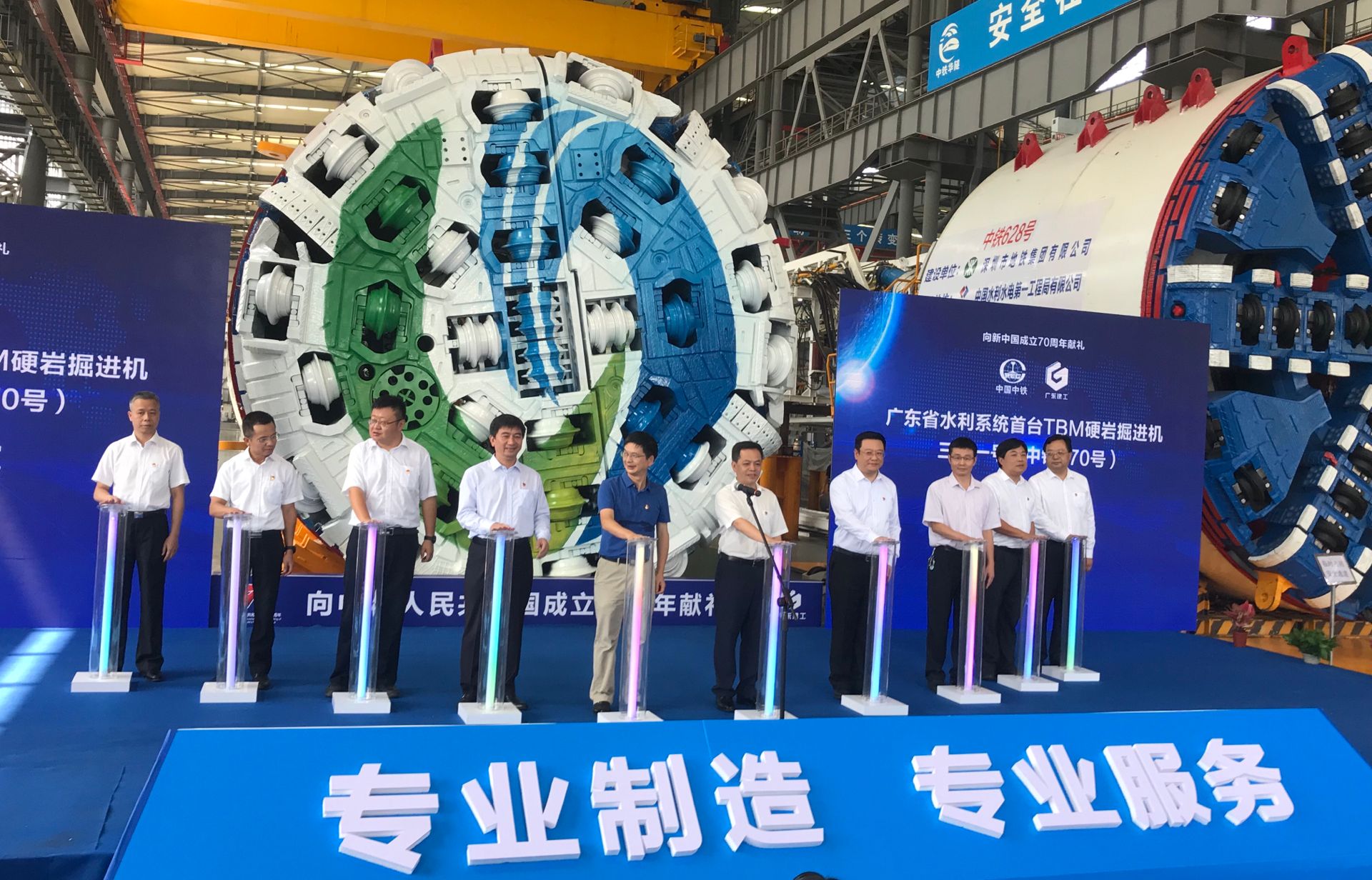 【香港商報網訊】記者 胡嘯原 報導:29日上午,廣東省水利系統首台盾構機(TBM硬岩掘進機三江一號)在佛山市順德區倫教街道正式下線,據了解,該台機器由中鐵裝備、廣東華隧建設、中鐵華隧共同為粵東三江連通工程量身定製,開挖直徑5.06米,整機長度約433米,即將投入廣東省水利重點民生工程——粵東韓江榕江練江三江連通工程。
